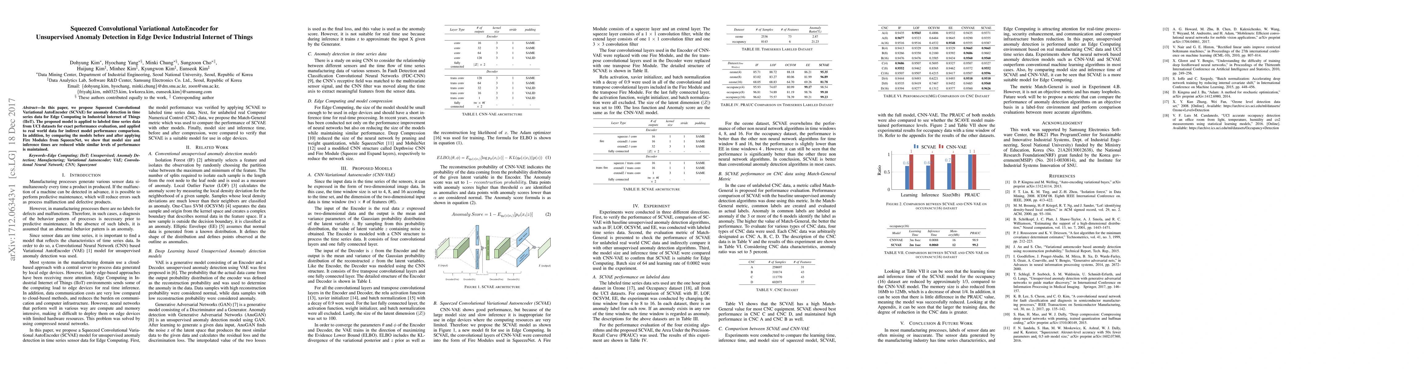 This paper introduces a Squeezed Convolutional Variational AutoEncoder (SCVAE) for anomaly detection in time series data within Edge Computing for Industrial Internet of Things (IIoT). The model demonstrates comparable performance to traditional methods while reducing model size and inference times through the use of Fire Modules from SqueezeNet.