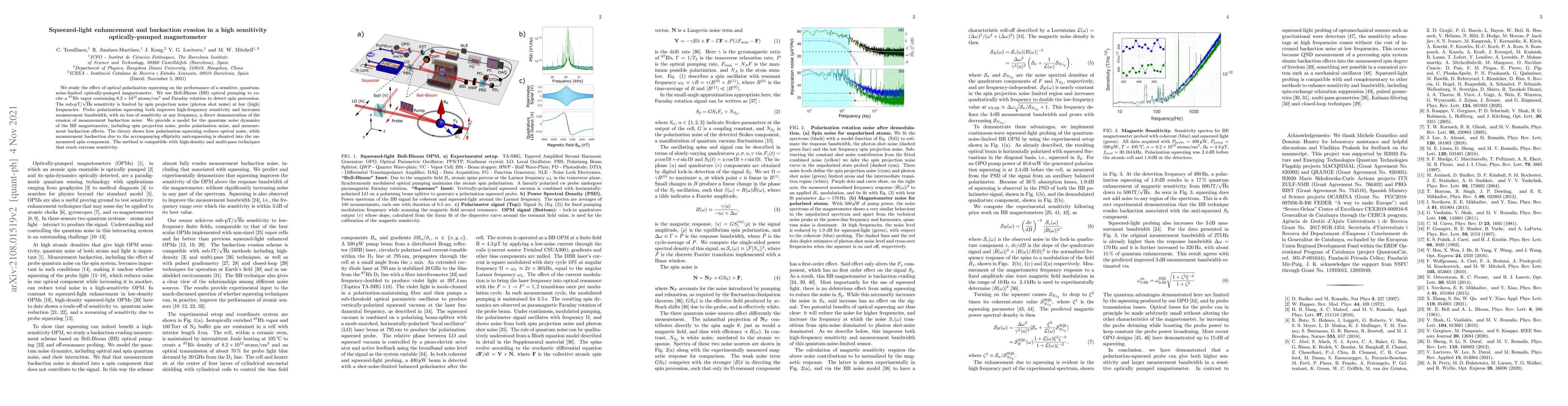 This paper investigates how optical polarization squeezing enhances the sensitivity of an optically pumped magnetometer, achieving sub-pT/√Hz sensitivity. It demonstrates that polarization squeezing improves high-frequency sensitivity and broadens the measurement bandwidth without compromising sensitivity, effectively evading measurement backaction noise.