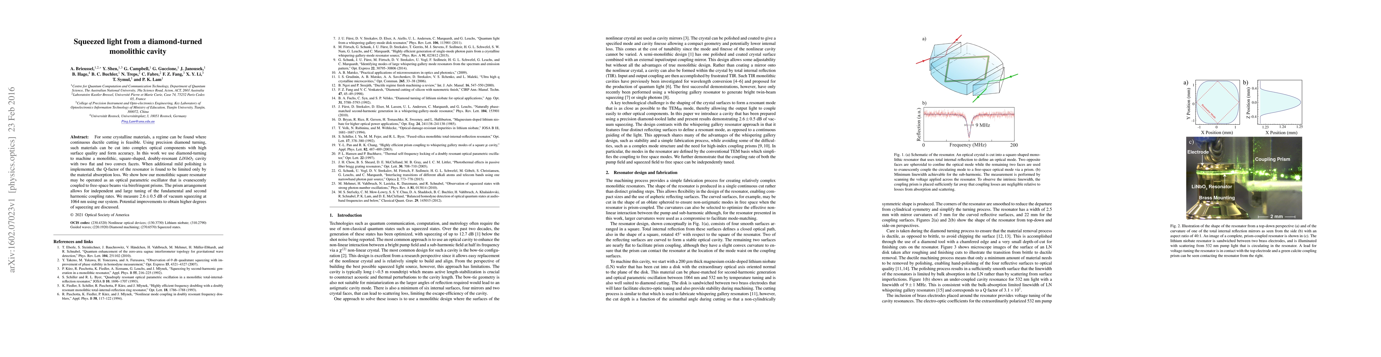 Researchers created a monolithic optical cavity in lithium niobate using diamond-turning, achieving 2.6 dB of vacuum squeezing at 1064 nm, with potential for further improvement.