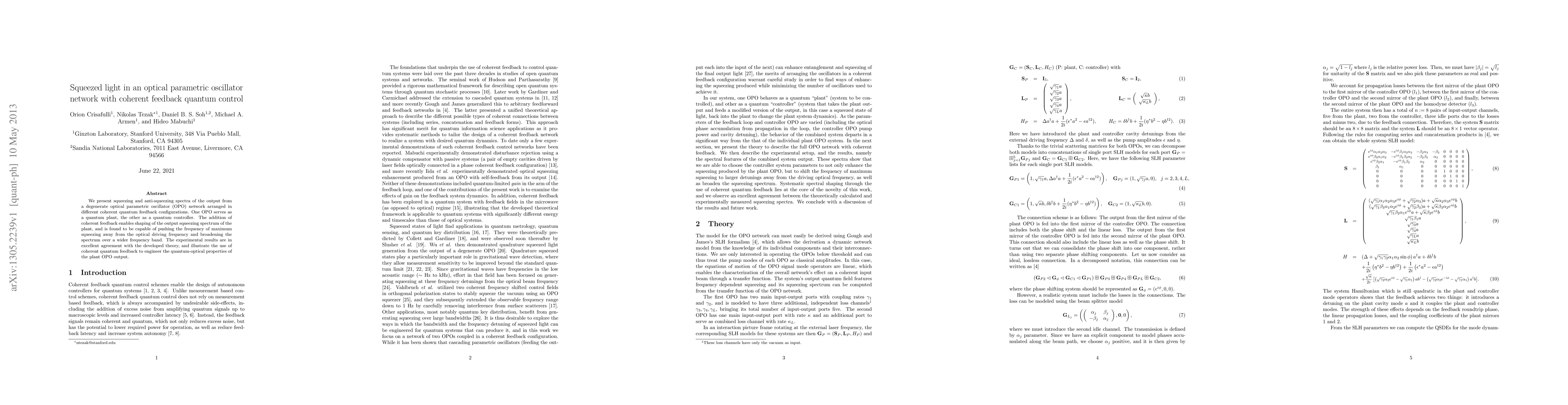 This paper investigates squeezing and anti-squeezing in an optical parametric oscillator network with coherent quantum feedback, demonstrating how feedback can shift and broaden the frequency of maximum squeezing. The study shows excellent agreement between theory and experiment, highlighting the potential for engineering quantum-optical properties via feedback control.