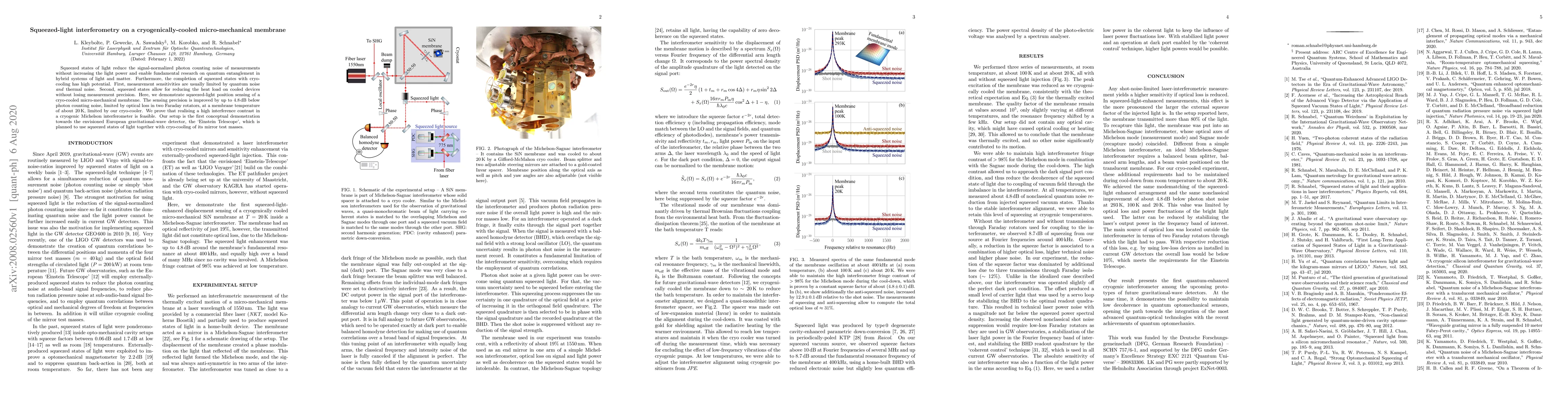 Squeezed states of light reduce the signal-normalized photon counting noise of measurements without increasing the light power and enable fundamental research on quantum entanglement in hybrid systems of light and matter. Furthermore, the completion of squeezed states with cryo-cooling has high potential. First, measurement sensitivities are usually limited by quantum noise and thermal noise. Second, squeezed states allow for reducing the heat load on cooled devices without losing measurement precision. Here, we demonstrate squeezed-light position sensing of a cryo-cooled micro-mechanical membrane. The sensing precision is improved by up to 4.8 dB below photon counting noise, limited by optical loss in two Faraday rotators, at a membrane temperature of about 20K, limited by our cryo-cooler. We prove that realising a high interference contrast in a cryogenic Michelson interferometer is feasible. Our setup is the first conceptual demonstration towards the envisioned European gravitational-wave detector, the 'Einstein Telescope', which is planned to use squeezed states of light together with cryo-cooling of its mirror test masses.