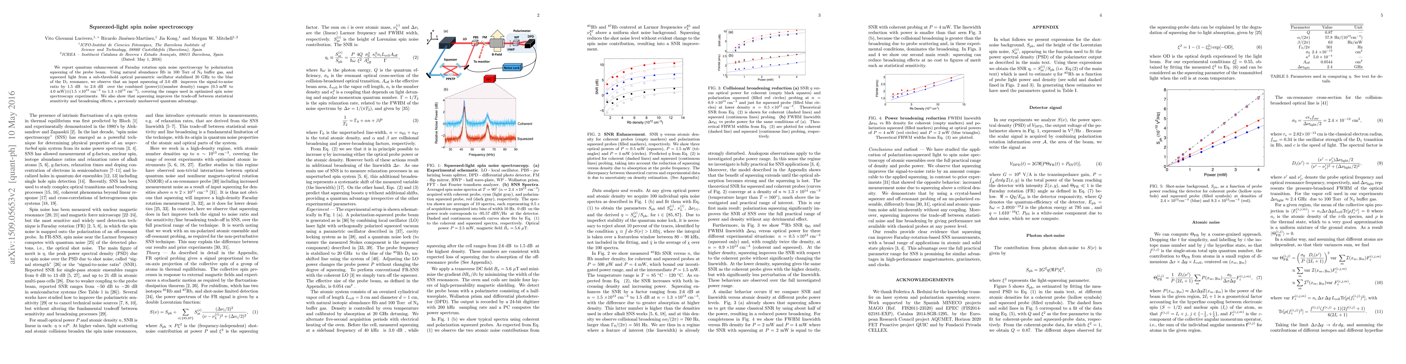 The paper presents a novel method for enhancing Faraday rotation-based spin noise spectroscopy using polarization-squeezed light, demonstrating a quantum advantage in signal-to-noise ratio and reduced broadening effects.