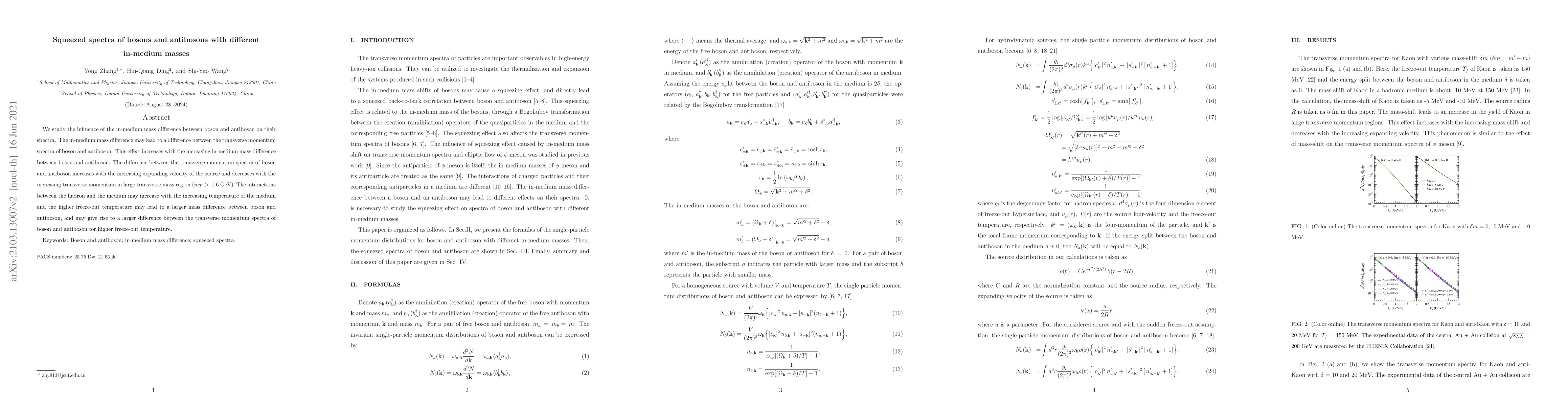 The in-medium mass difference between bosons and antibosons affects their transverse momentum spectra, with larger differences seen at higher temperatures and freeze-out temperatures.