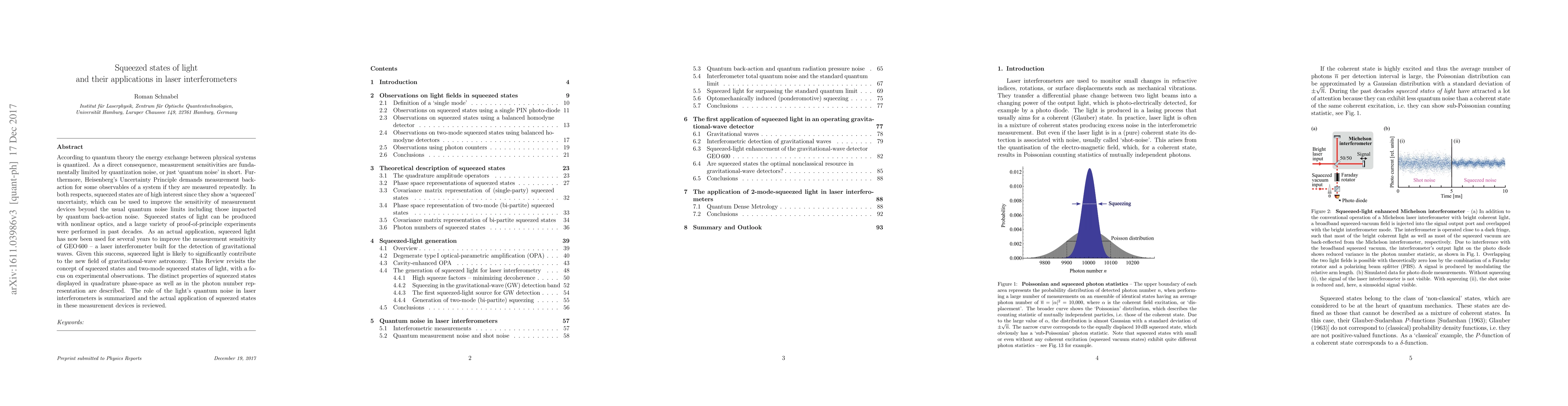 This paper reviews squeezed states of light, which reduce quantum noise and improve measurement sensitivity, and explores their application in laser interferometers, notably for enhancing the detection of gravitational waves in the GEO600 interferometer. It emphasizes experimental observations and the quantum mechanical principles behind squeezed states.