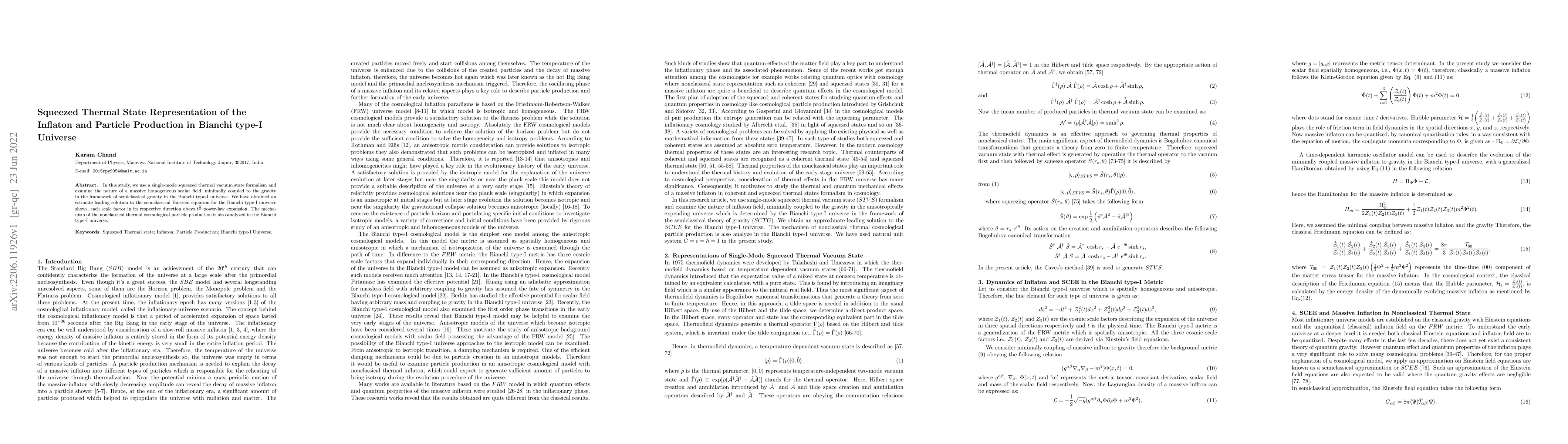 This paper investigates the squeezed thermal state representation of the inflaton in a Bianchi type-I universe, revealing a t^(2/3) power-law expansion for scale factors. It also analyzes nonclassical thermal particle production mechanisms in this cosmological model.