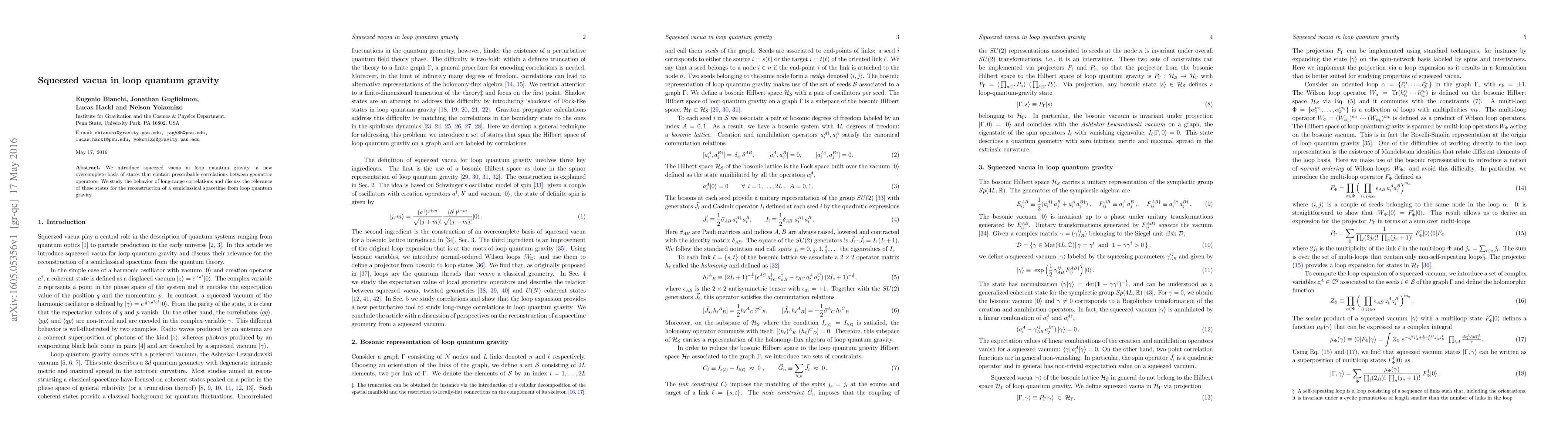 This paper introduces squeezed vacua in loop quantum gravity, presenting a new overcomplete basis of states with prescribable correlations between geometric operators. The study examines the behavior of long-range correlations and their significance in reconstructing semiclassical spacetime from loop quantum gravity.