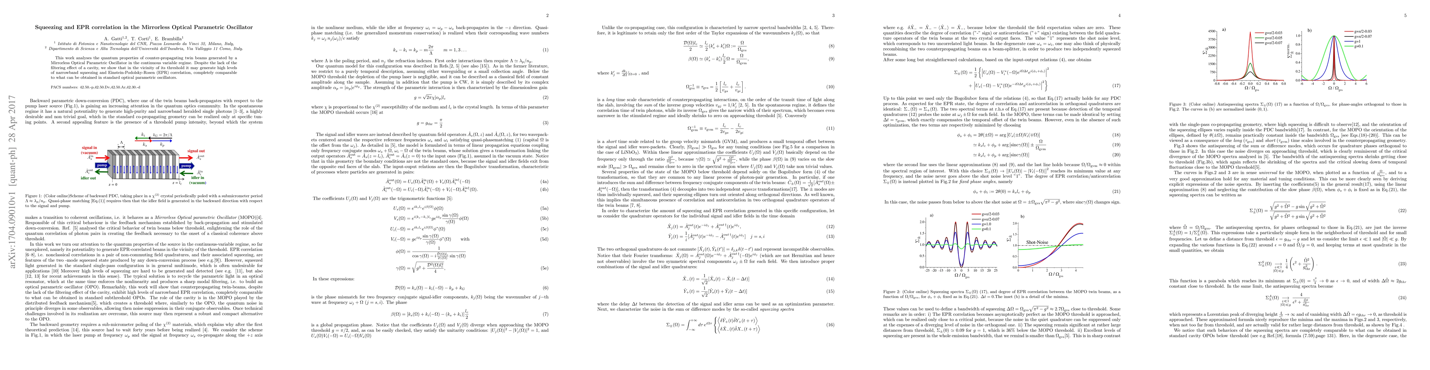 This work analyses the quantum properties of counter-propagating twin beams generated by a Mirrorless Optical Parametric Oscillator in the continuous variable regime. Despite the lack of the filtering effect of a cavity, we show that in the vicinity of its threshold it may generate high levels of narrowband squeezing and Einstein-Podolsky-Rosen (EPR) correlation, completely comparable to what can be obtained in standard optical parametric oscillators.