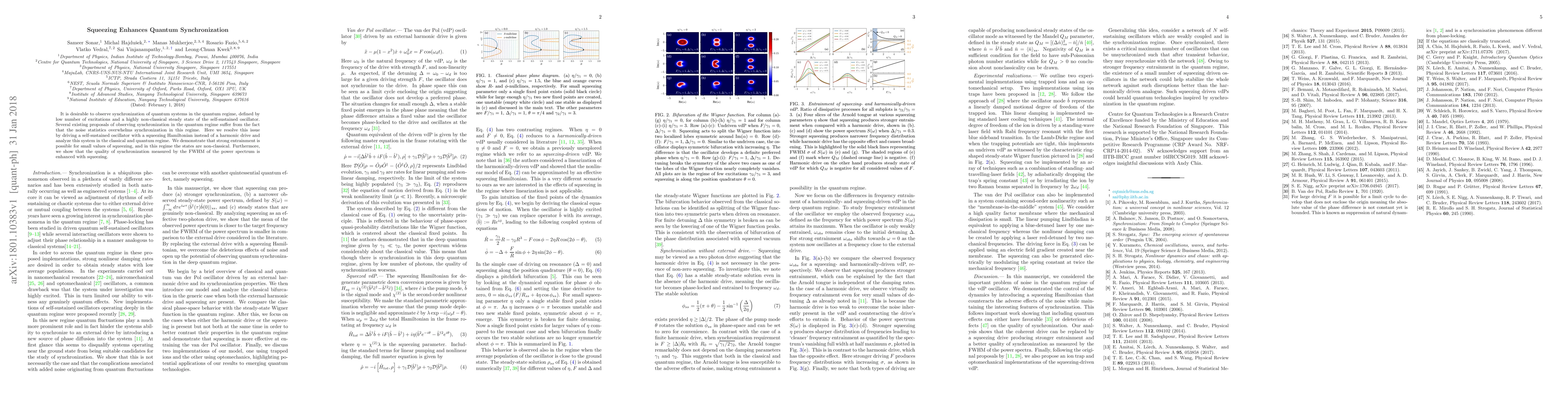 This paper proposes using a squeezing Hamiltonian to drive self-sustained oscillators to achieve quantum synchronization, overcoming noise-dominated synchronization issues. It demonstrates that small amounts of squeezing enhance synchronization quality, particularly in non-classical states.