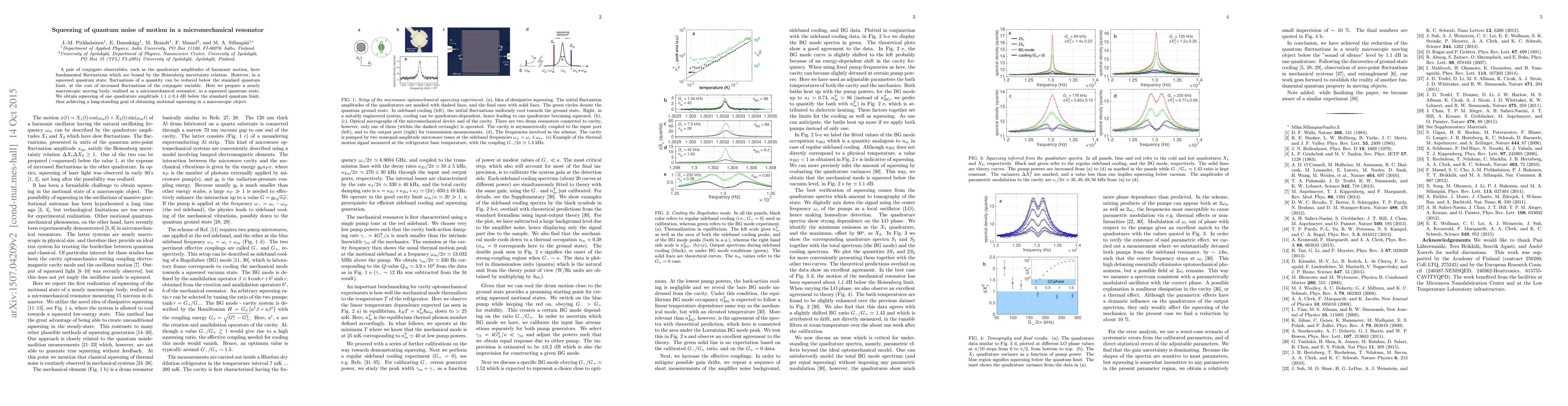 This paper reports the preparation of a micromechanical resonator in a squeezed quantum state, achieving a reduction of one quadrature amplitude by $1.1 \pm 0.4$ dB below the standard quantum limit, marking a significant milestone in achieving motional squeezing in macroscopic objects.