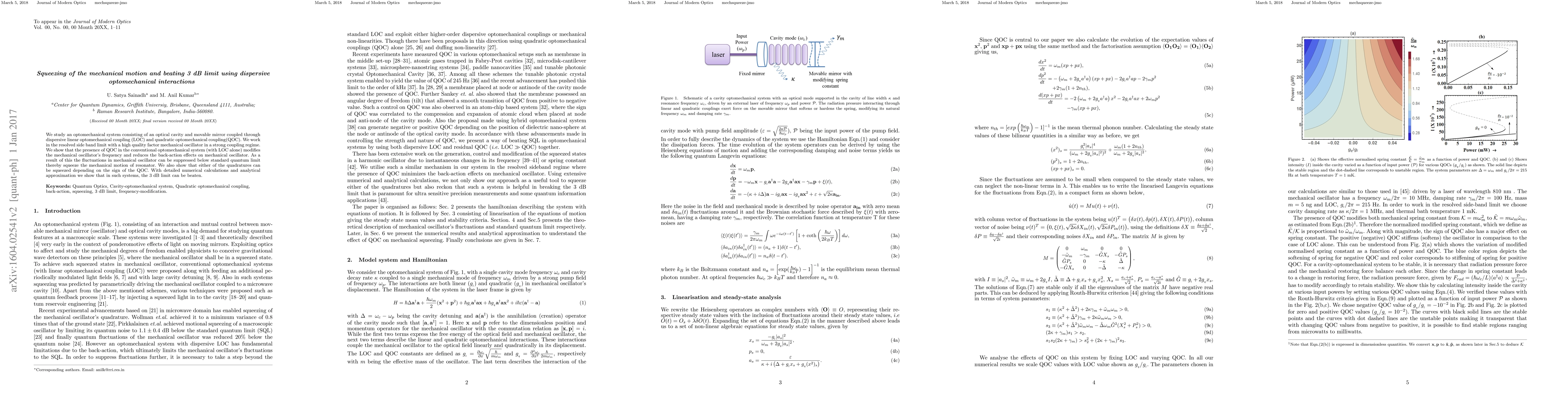 This paper investigates an optomechanical system with both linear and quadratic optomechanical coupling, demonstrating that quadratic coupling can suppress mechanical oscillator fluctuations below the standard quantum limit, thus squeezing the mechanical motion and beating the 3 dB limit. The study shows that the sign of quadratic coupling determines which quadrature can be squeezed.