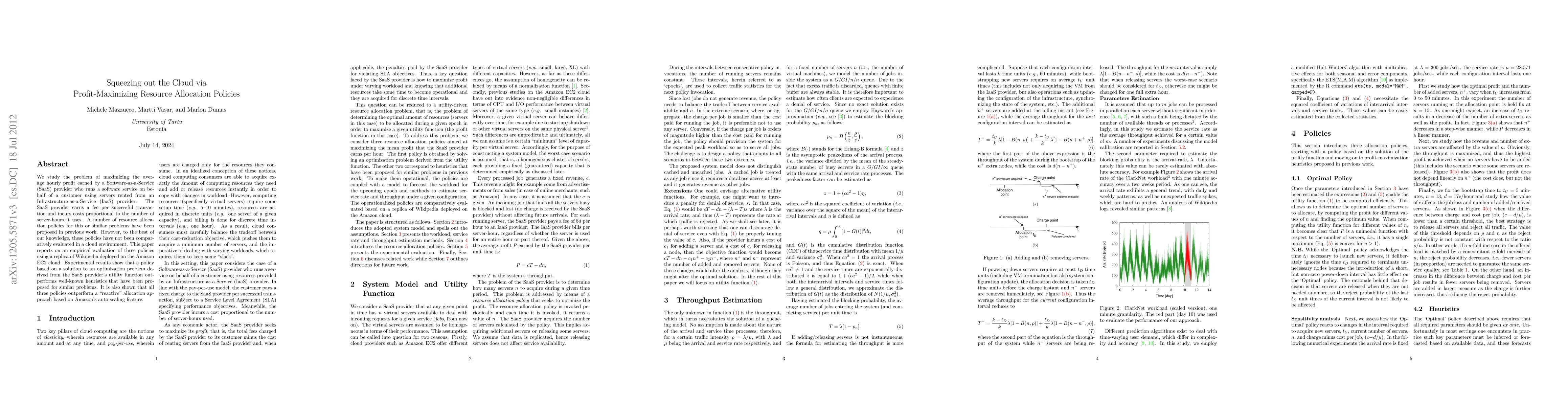 This paper evaluates three resource allocation policies for maximizing profit in a SaaS provider running on an IaaS cloud, using a Wikipedia replica on Amazon EC2. The results show that an optimization-based policy outperforms heuristics and Amazon's auto-scaling feature.