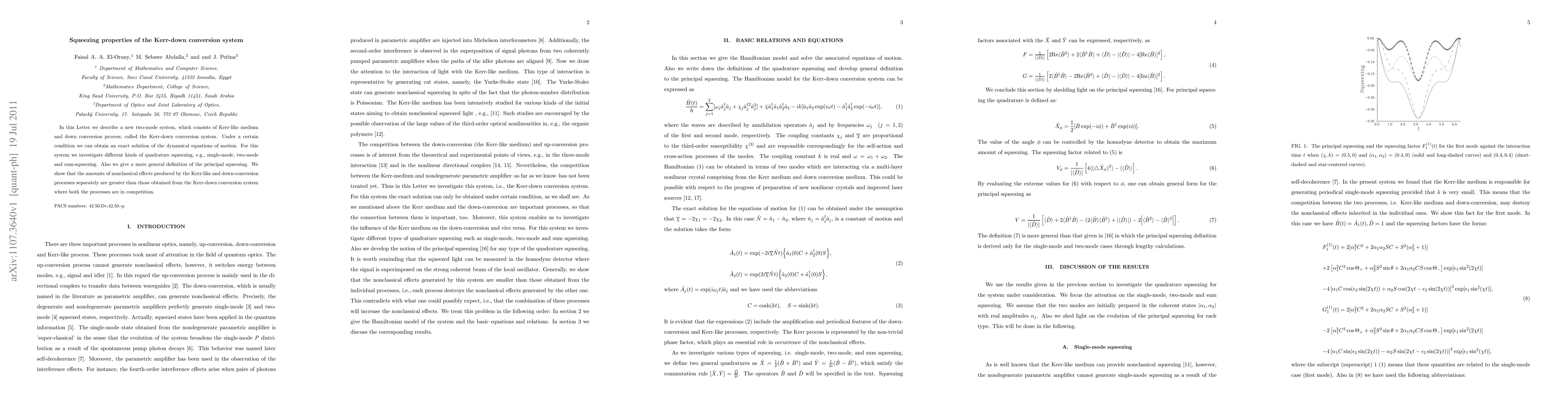 In this Letter we describe a new two-mode system, which consists of Kerr-like medium and down conversion process, called the Kerr-down conversion system. Under a certain condition we can obtain an exact solution of the dynamical equations of motion. For this system we investigate different kinds of quadrature squeezing, e.g., single-mode, two-mode and sum-squeezing. Also we give a more general definition of the principal squeezing. We show that the amounts of nonclassical effects produced by the Kerr-like and down-conversion processes separately are greater than those obtained from the Kerr-down conversion system where both the processes are in competition.