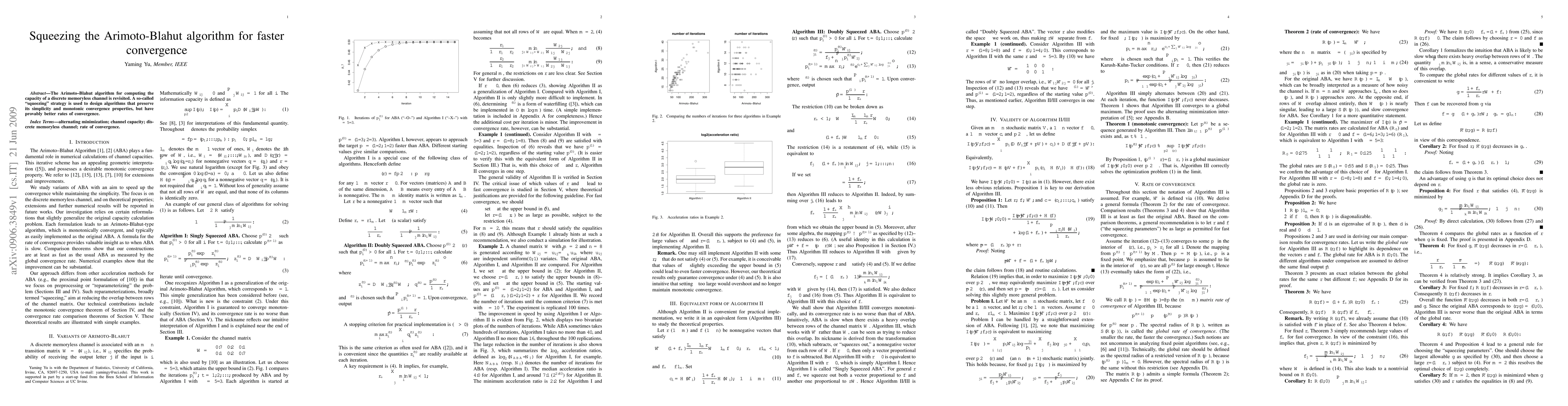 This paper proposes a "squeezing" strategy to enhance the Arimoto-Blahut algorithm, achieving faster convergence while maintaining its simplicity and monotonic convergence properties. The new approach demonstrates improved rates of convergence for computing the capacity of a discrete memoryless channel.