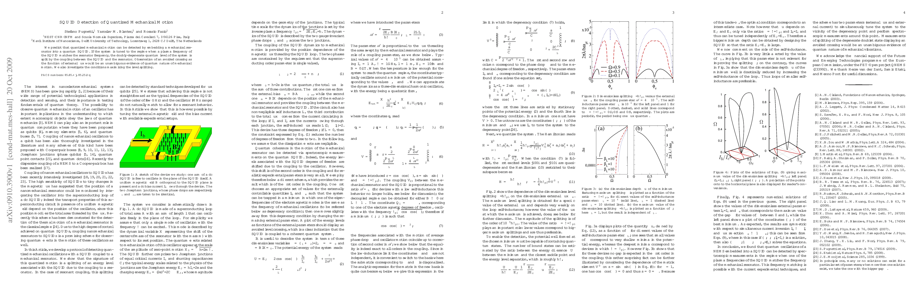 This paper proposes using a quantum SQUID to detect quantized mechanical motion by embedding a mechanical resonator within it. An avoided crossing in the system's doubly-degenerate quantum levels, observable via external flux, would confirm the quantum nature of the mechanical motion, with conditions for maximizing level splitting also explored.