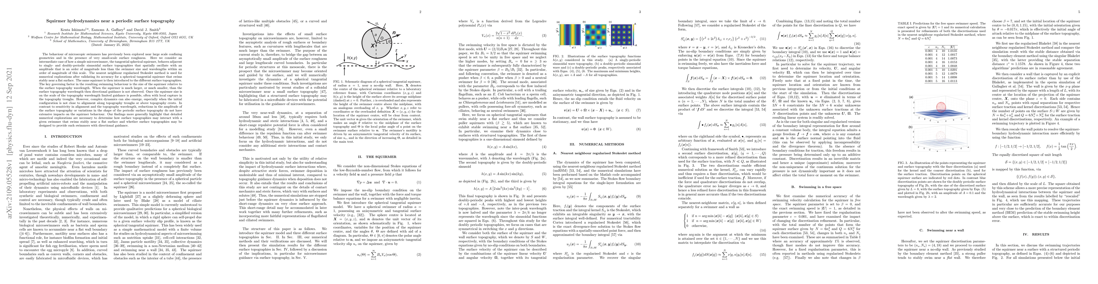 This study investigates the behavior of tangential spherical squirmers near singly- and doubly-periodic sinusoidal surface topographies. The results show that directional guidance is only observed when the squirmer's size is comparable to the topography wavelength, with complex dynamics emerging otherwise.