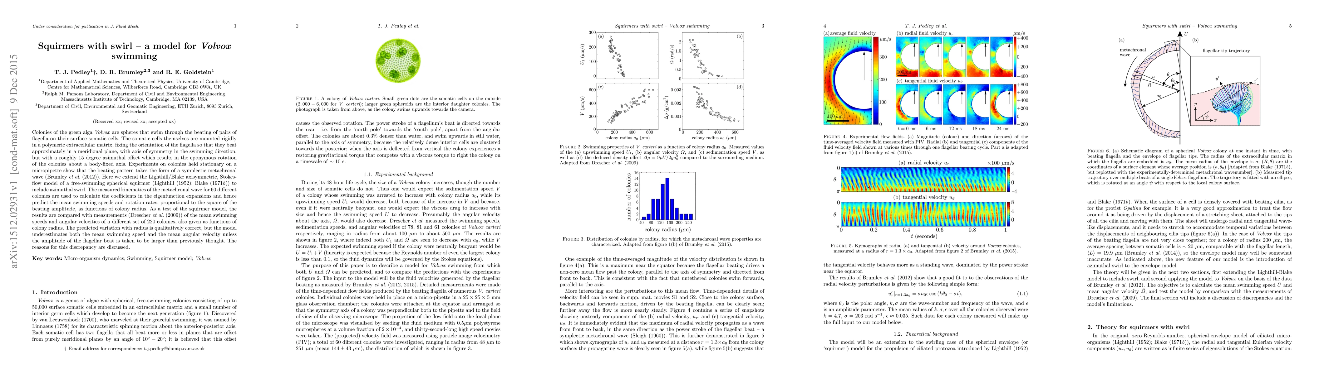 Colonies of the green alga $Volvox$ are spheres that swim through the beating of pairs of flagella on their surface somatic cells. The somatic cells themselves are mounted rigidly in a polymeric extracellular matrix, fixing the orientation of the flagella so that they beat approximately in a meridional plane, with axis of symmetry in the swimming direction, but with a roughly 15 degree azimuthal offset which results in the eponymous rotation of the colonies about a body-fixed axis. Experiments on colonies held stationary on a micropipette show that the beating pattern takes the form of a symplectic metachronal wave (Brumley et al. (2012)). Here we extend the Lighthill/Blake axisymmetric, Stokes-flow model of a free-swimming spherical squirmer (Lighthill (1952), Blake (1971b)) to include azimuthal swirl. The measured kinematics of the metachronal wave for 60 different colonies are used to calculate the coefficients in the eigenfunction expansions and hence predict the mean swimming speeds and rotation rates, proportional to the square of the beating amplitude, as functions of colony radius. As a test of the squirmer model, the results are compared with measurements (Drescher et al. (2009)) of the mean swimming speeds and angular velocities of a different set of 220 colonies, also given as functions of colony radius. The predicted variation with radius is qualitatively correct, but the model underestimates both the mean swimming speed and the mean angular velocity unless the amplitude of the flagellar beat is taken to be larger than previously thought. The reasons for this discrepancy are discussed.