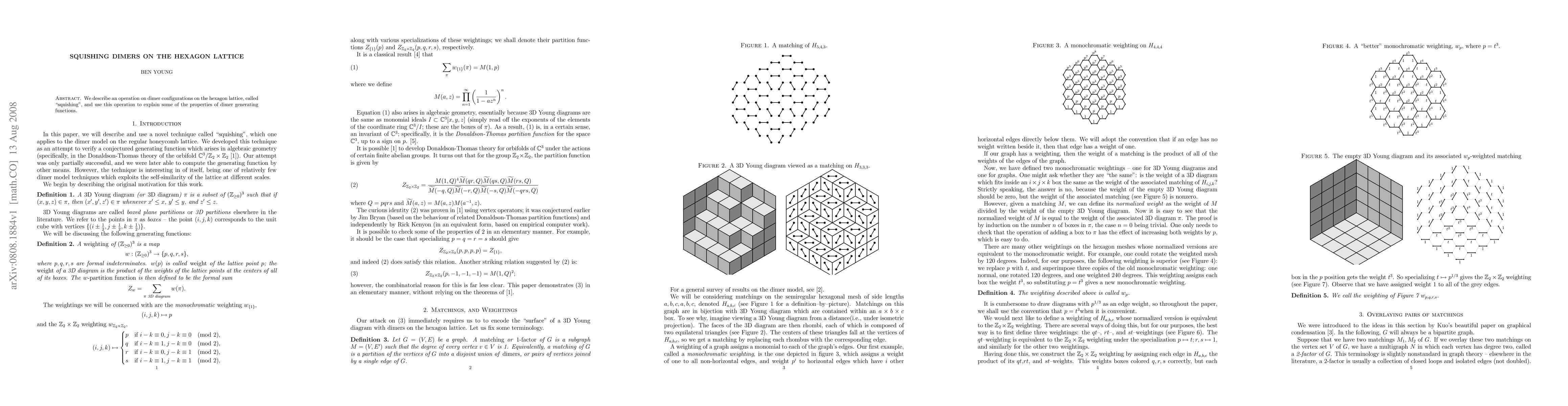 We describe an operation on dimer configurations on the hexagon lattice, called "squishing", and use this operation to explain some of the properties of dimer generating functions.