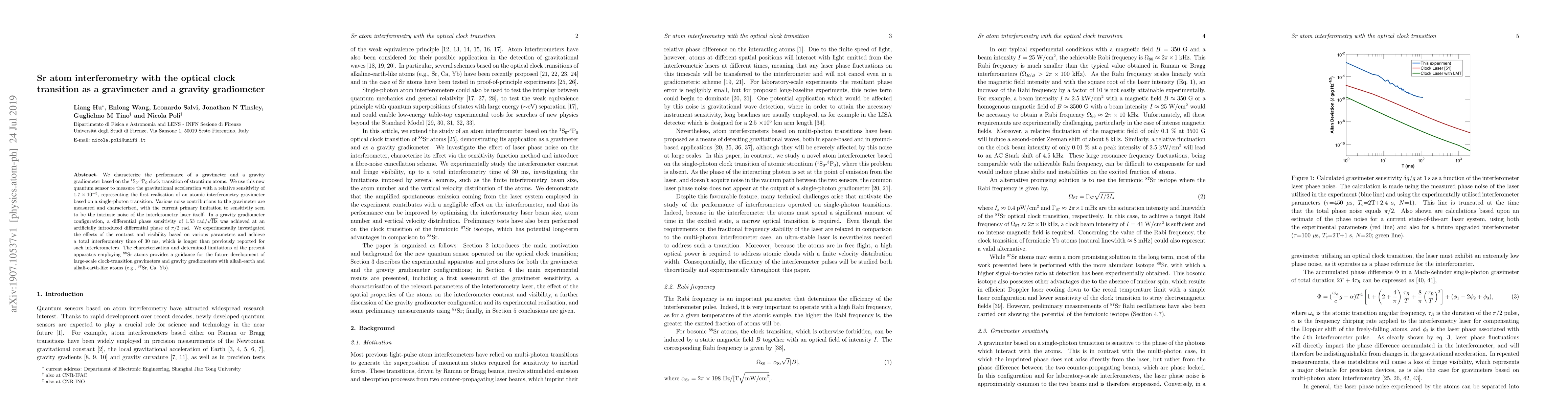 This paper presents a gravimeter and gravity gradiometer based on strontium atom interferometry using the optical clock transition, achieving a relative sensitivity of $1.7\times10^{-5}$. The study identifies laser interferometry noise as the primary sensitivity limitation and demonstrates a differential phase sensitivity of 1.53~rad/$\sqrt{Hz}$ in the gradiometer configuration.