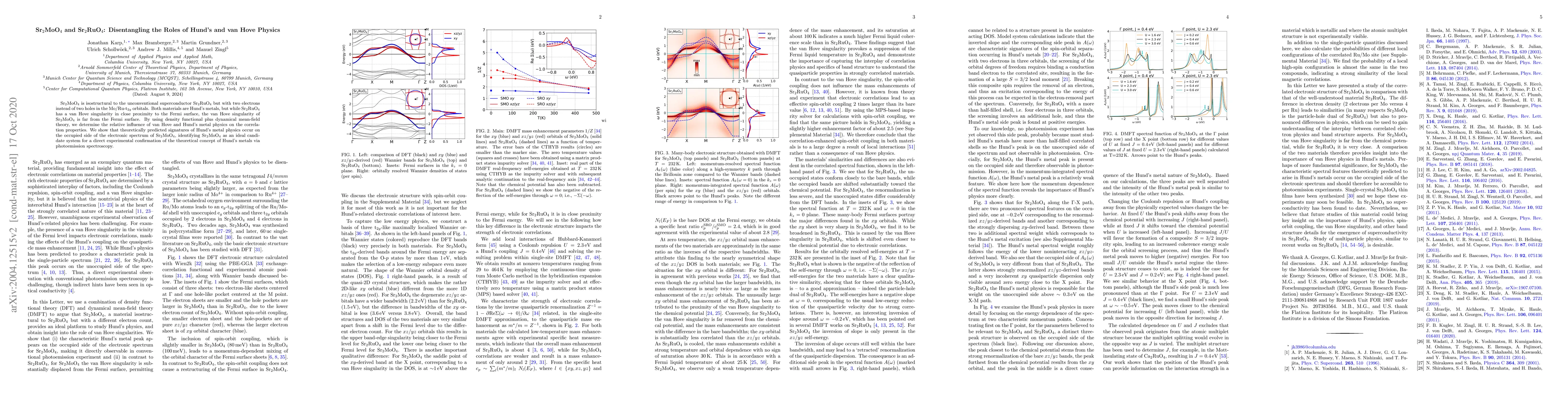This paper investigates Sr$_2$MoO$_4$ and Sr$_2$RuO$_4$ to disentangle the roles of Hund's and van Hove physics. It finds that Sr$_2$MoO$_4$ exhibits theoretical signatures of Hund's metal physics, making it a prime candidate for experimental verification via photoemission spectroscopy.