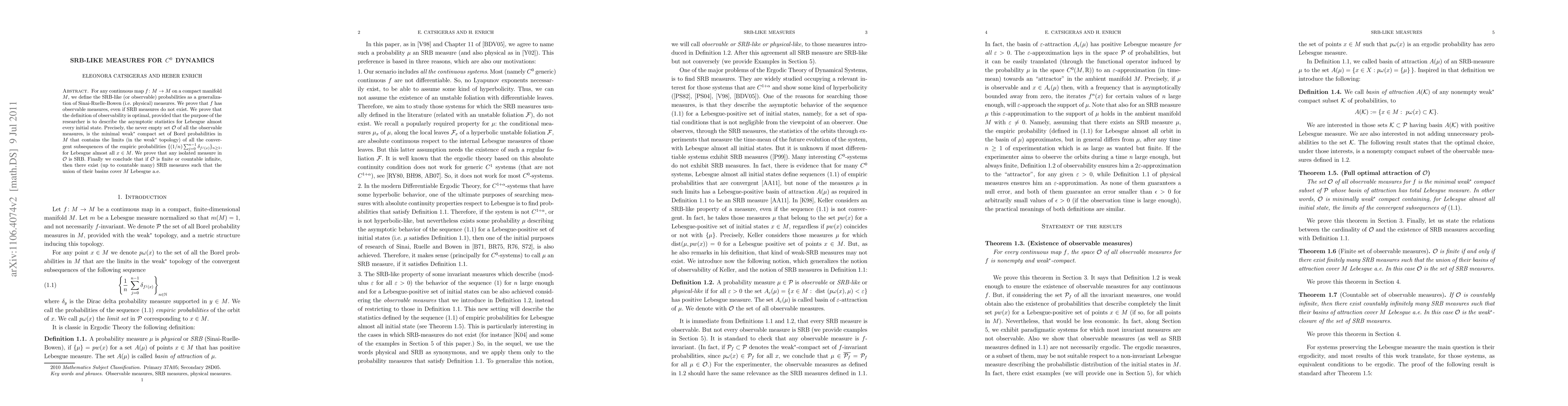 This paper generalizes Sinai-Ruelle-Bowen (SRB) measures to define SRB-like (observable) probabilities for continuous maps on compact manifolds, proving their existence even when traditional SRB measures do not. The study concludes that observable measures provide the optimal description of asymptotic statistics for almost every initial state.