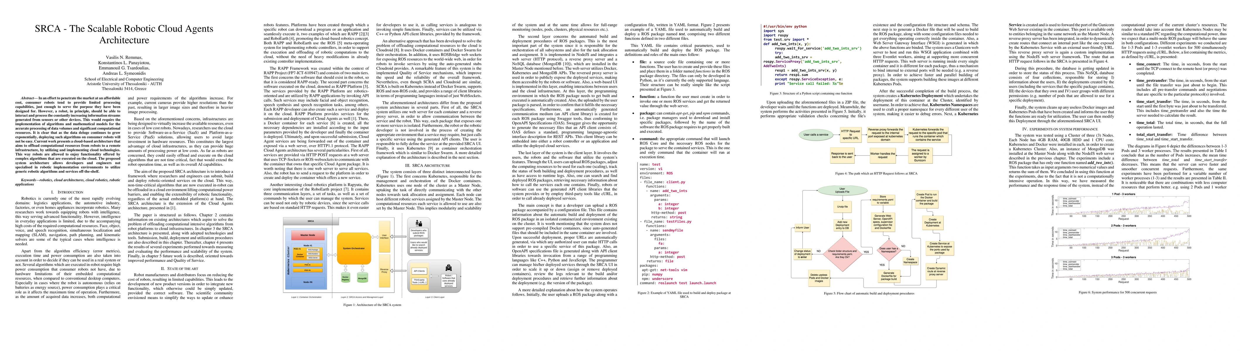 The paper introduces SRCA, a scalable robotic cloud agents architecture that offloads computational tasks from consumer robots to a remote cloud infrastructure, enabling robots to leverage complex algorithms without requiring extensive onboard processing capabilities. This approach facilitates the use of generic robotic algorithms by non-specialized developers.