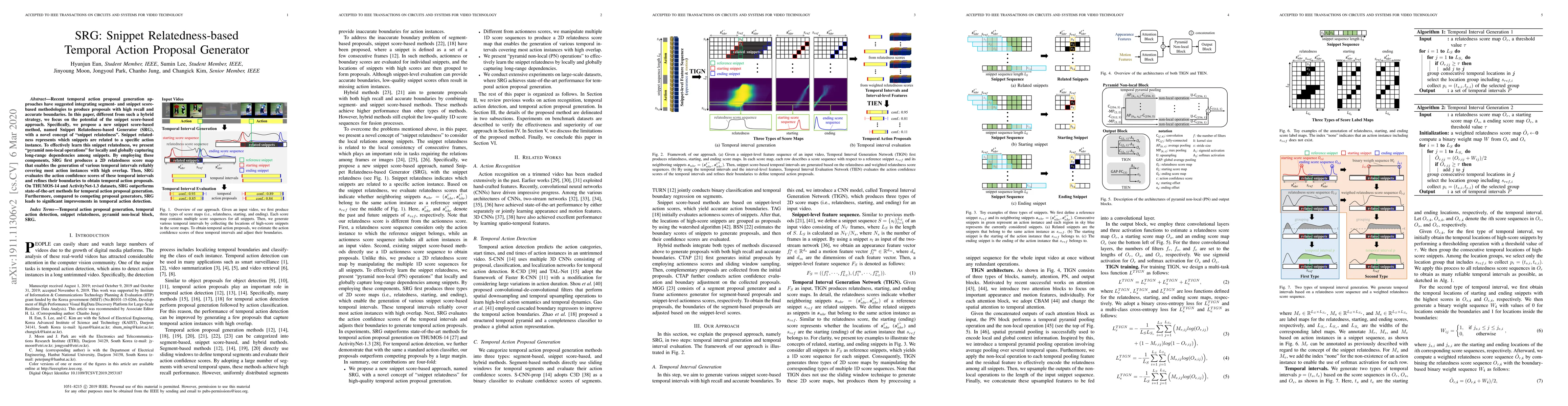 The paper introduces SRG, a Snippet Relatedness-based Generator for temporal action proposal generation, focusing on snippet relatedness to improve recall and boundary accuracy. SRG employs pyramid non-local operations to capture long-range dependencies and generate high-quality temporal action proposals, outperforming state-of-the-art methods on THUMOS-14 and ActivityNet-1.3 datasets.