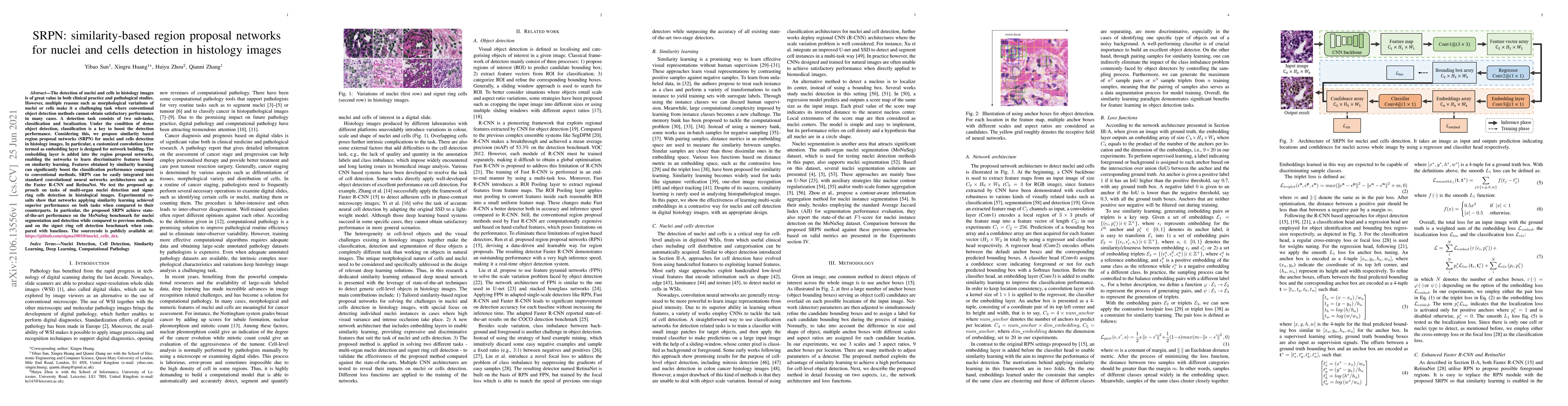 The detection of nuclei and cells in histology images is of great value in both clinical practice and pathological studies. However, multiple reasons such as morphological variations of nuclei or cells make it a challenging task where conventional object detection methods cannot obtain satisfactory performance in many cases. A detection task consists of two sub-tasks, classification and localization. Under the condition of dense object detection, classification is a key to boost the detection performance. Considering this, we propose similarity based region proposal networks (SRPN) for nuclei and cells detection in histology images. In particular, a customized convolution layer termed as embedding layer is designed for network building. The embedding layer is added into the region proposal networks, enabling the networks to learn discriminative features based on similarity learning. Features obtained by similarity learning can significantly boost the classification performance compared to conventional methods. SRPN can be easily integrated into standard convolutional neural networks architectures such as the Faster R-CNN and RetinaNet. We test the proposed approach on tasks of multi-organ nuclei detection and signet ring cells detection in histological images. Experimental results show that networks applying similarity learning achieved superior performance on both tasks when compared to their counterparts. In particular, the proposed SRPN achieve state-of-the-art performance on the MoNuSeg benchmark for nuclei segmentation and detection while compared to previous methods, and on the signet ring cell detection benchmark when compared with baselines. The sourcecode is publicly available at: https://github.com/sigma10010/nuclei_cells_det.