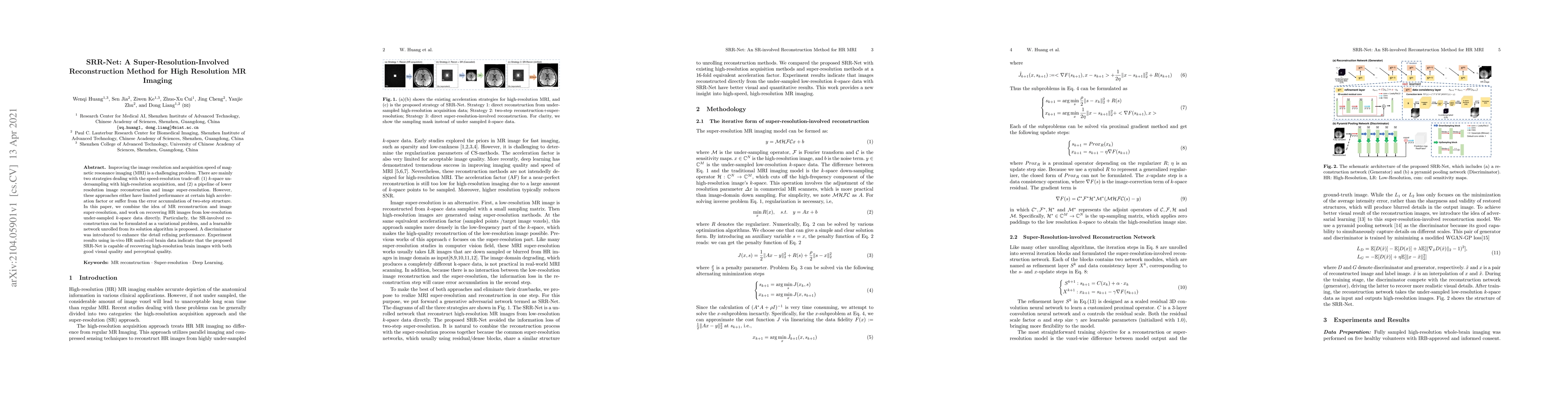 SRR-Net integrates MR reconstruction and image super-resolution to directly recover high-resolution MRI images from low-resolution under-sampled data, achieving better visual and perceptual quality compared to traditional methods.