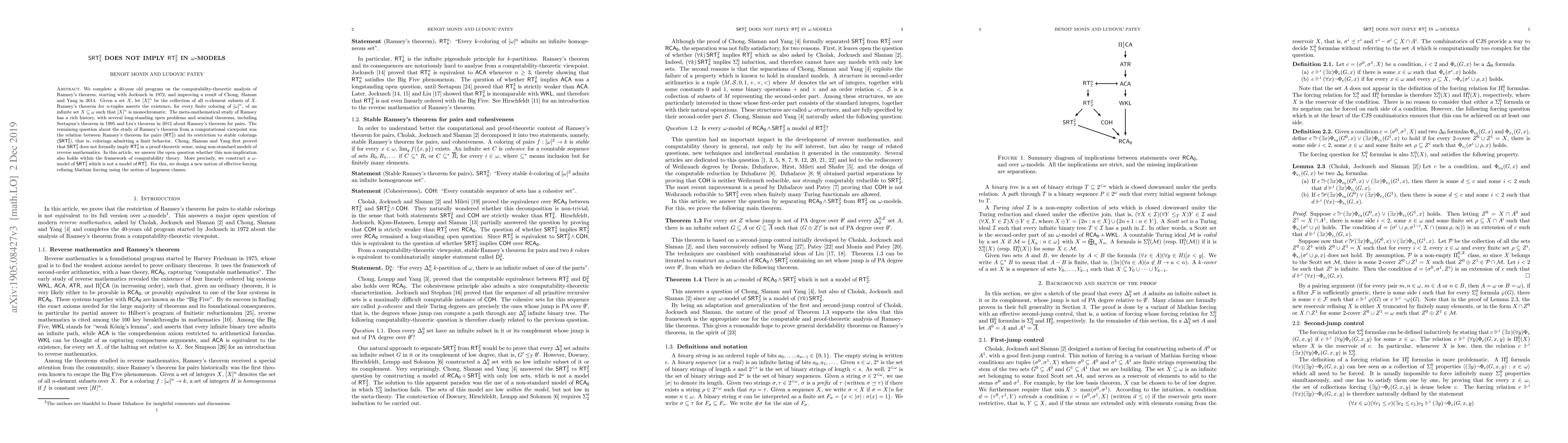 This paper resolves a longstanding question in computability theory by demonstrating that Ramsey's theorem for pairs ($\mathsf{RT}^2_2$) does not follow from its stable coloring restriction ($\mathsf{SRT}^2_2$) within $\omega$-models. The authors construct a new $\omega$-model of $\mathsf{SRT}^2_2$ that fails to satisfy $\mathsf{RT}^2_2$, using a refined notion of effective forcing.