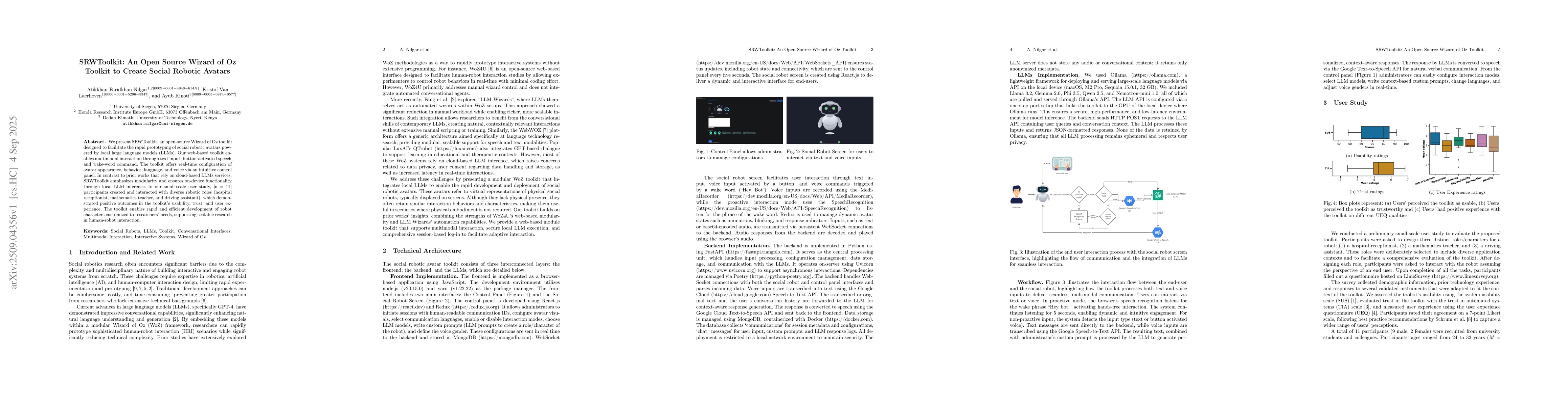 We present SRWToolkit, an open-source Wizard of Oz toolkit designed to facilitate the rapid prototyping of social robotic avatars powered by local large language models (LLMs). Our web-based toolkit enables multimodal interaction through text input, button-activated speech, and wake-word command. The toolkit offers real-time configuration of avatar appearance, behavior, language, and voice via an intuitive control panel. In contrast to prior works that rely on cloud-based LLM services, SRWToolkit emphasizes modularity and ensures on-device functionality through local LLM inference. In our small-scale user study ($n=11$), participants created and interacted with diverse robotic roles (hospital receptionist, mathematics teacher, and driving assistant), which demonstrated positive outcomes in the toolkit's usability, trust, and user experience. The toolkit enables rapid and efficient development of robot characters customized to researchers' needs, supporting scalable research in human-robot interaction.