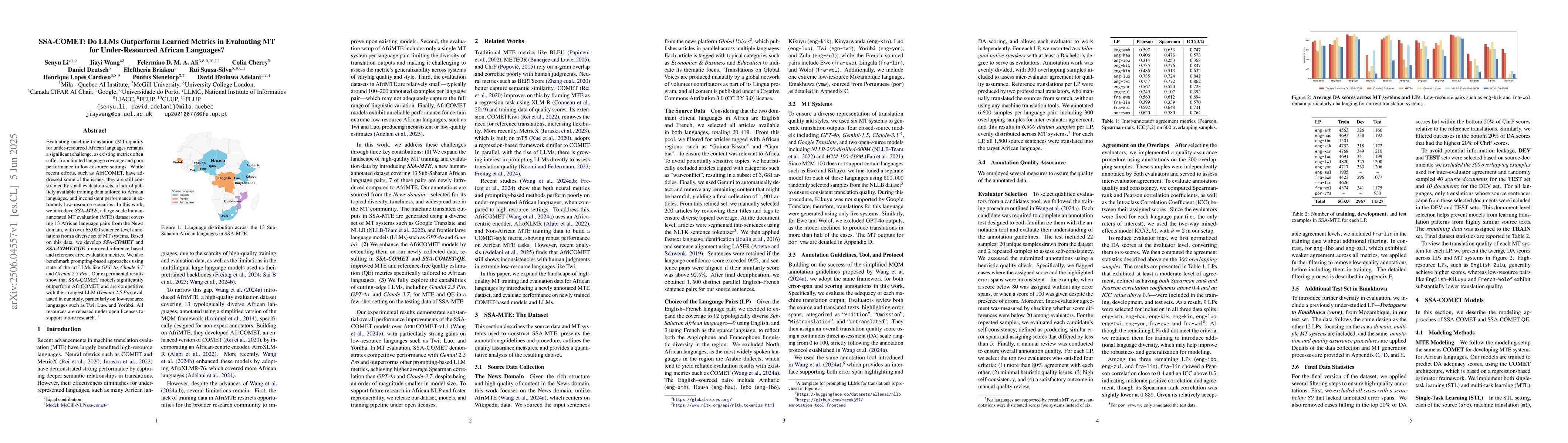 The development of SSA-COMET and SSA-COMET-QE, reference-based and reference-free evaluation metrics for under-resourced African languages, along with a large-scale annotated dataset (SSA-MTE).