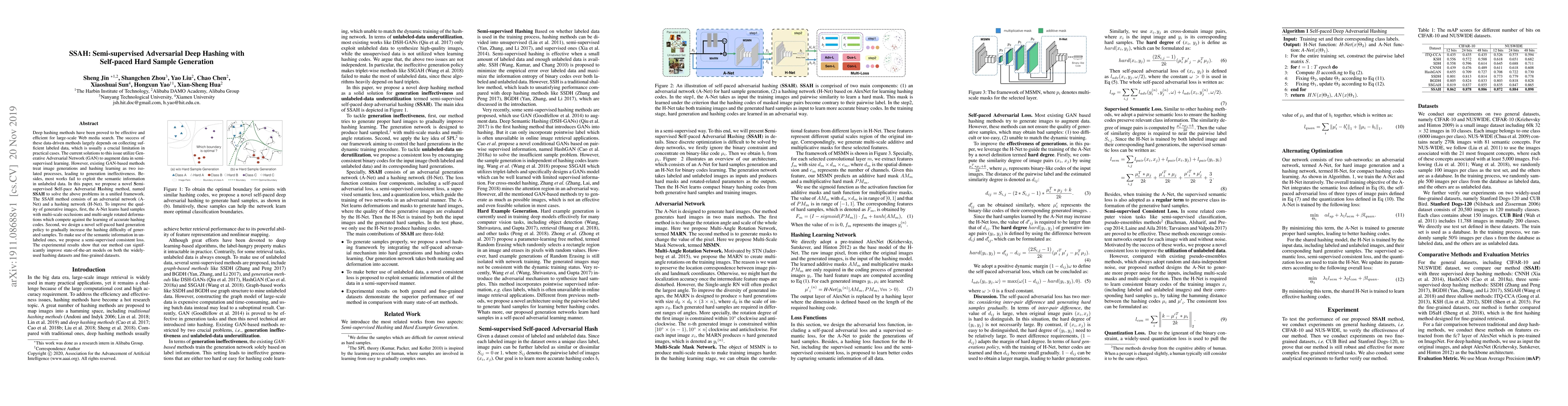 The paper proposes a Semi-supervised Self-paced Adversarial Deep Hashing (SSAH) method to address the challenge of insufficient labeled data in deep hashing. SSAH integrates an adversarial network and a hashing network, utilizing self-paced hard sample generation to improve generative image quality and a semi-supervised consistent loss to exploit unlabeled data, achieving superior performance on various datasets.