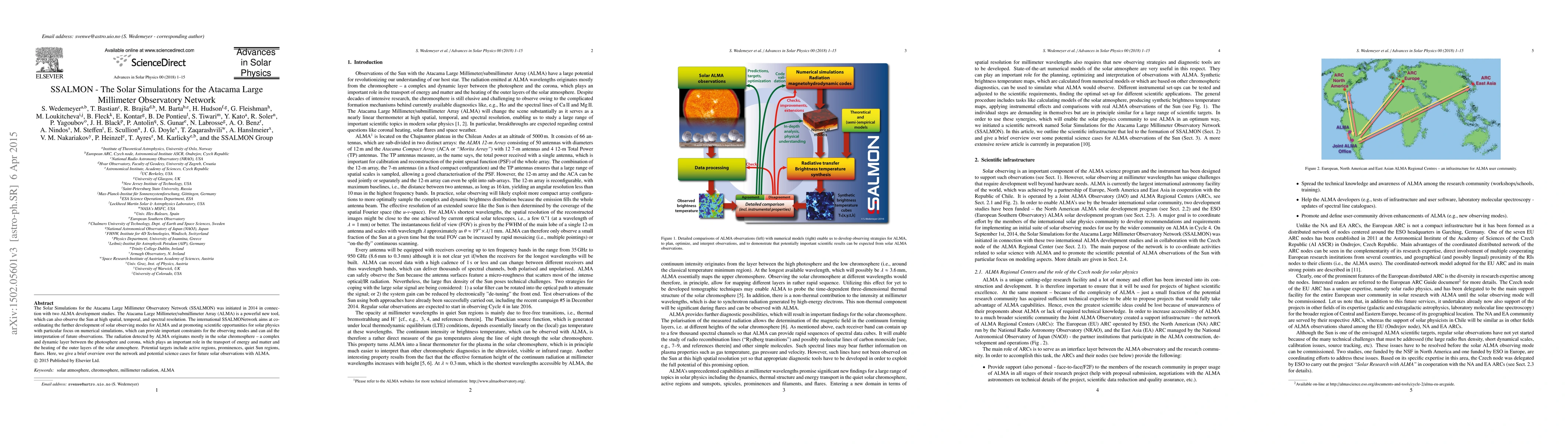 SSALMON, initiated in 2014, coordinates the development of solar observing modes for ALMA, aiming to enhance solar physics research through high-resolution ALMA observations of the solar chromosphere, with a focus on numerical simulations to interpret future data. Potential targets include active regions, prominences, and flares.