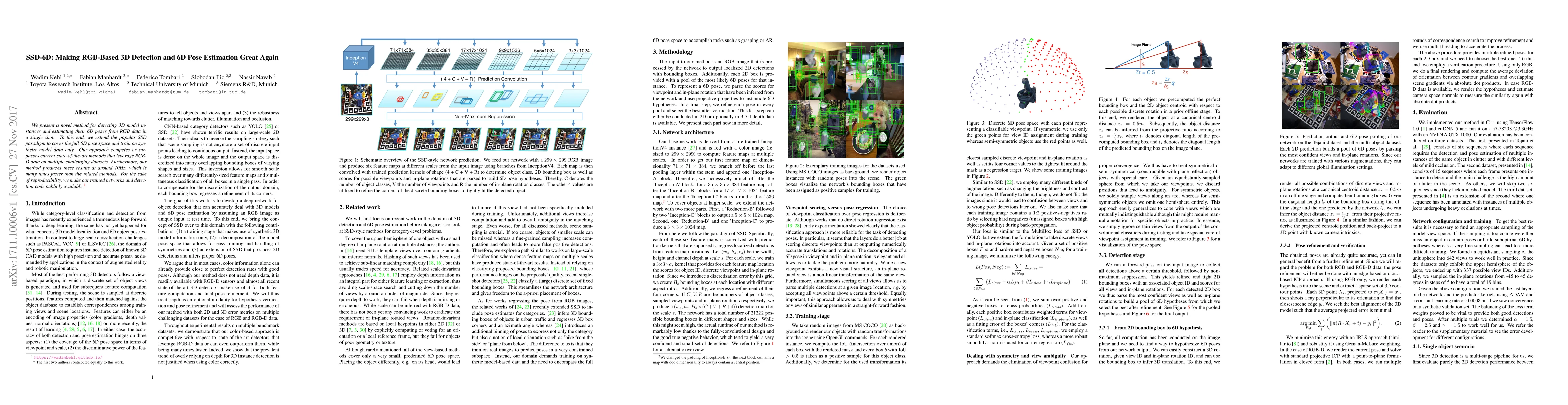 This paper introduces SSD-6D, a novel method for detecting 3D model instances and estimating their 6D poses from RGB data in real-time. The approach extends the SSD paradigm and outperforms or matches state-of-the-art methods using only RGB data, achieving speeds of around 10Hz.