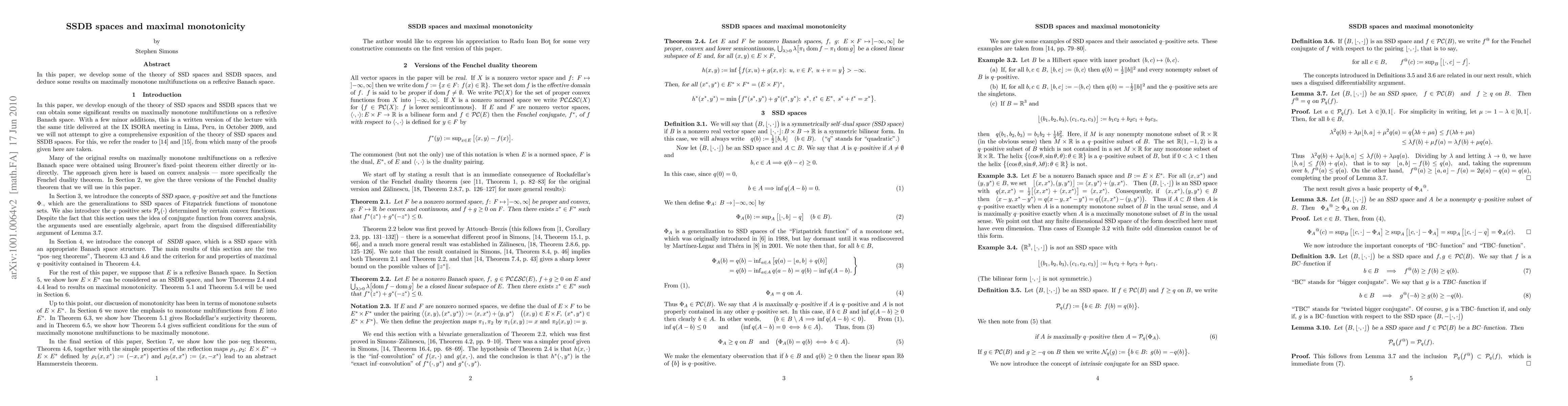 Summary: This paper explores the theory of SSD spaces and SSDB spaces, establishing results regarding maximally monotone multifunctions within the context of reflexive Banach spaces. The findings contribute to the understanding of maximal monotonicity in these mathematical frameworks.