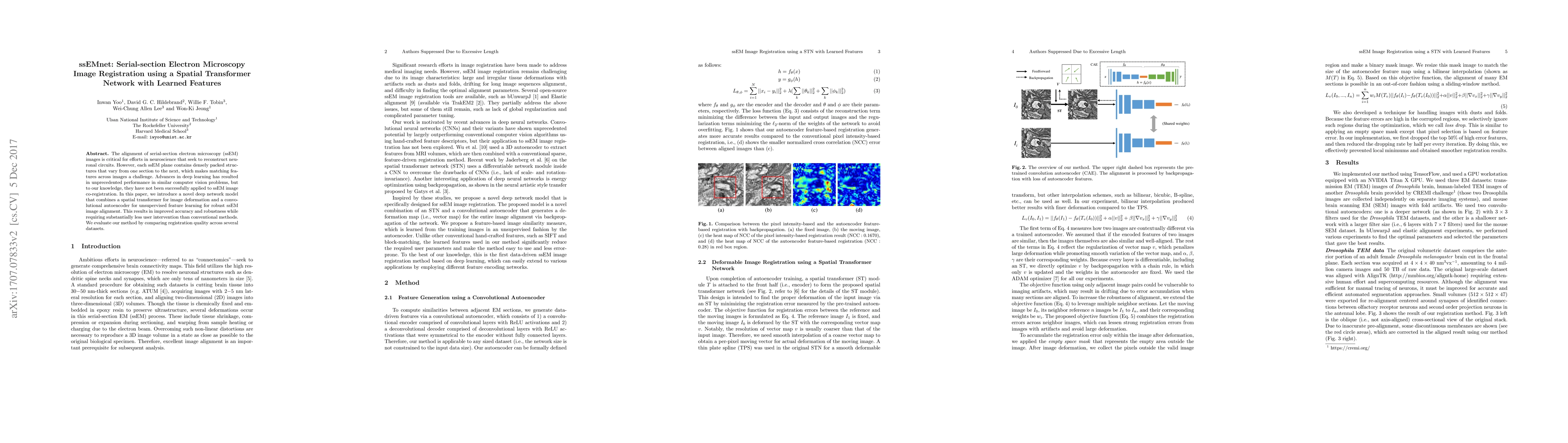 This paper introduces a novel deep learning model, ssEMnet, that uses a spatial transformer network and a convolutional autoencoder for robust registration of serial-section electron microscopy images, achieving improved accuracy and requiring less user intervention compared to conventional methods. The method is evaluated across multiple datasets to demonstrate its effectiveness.