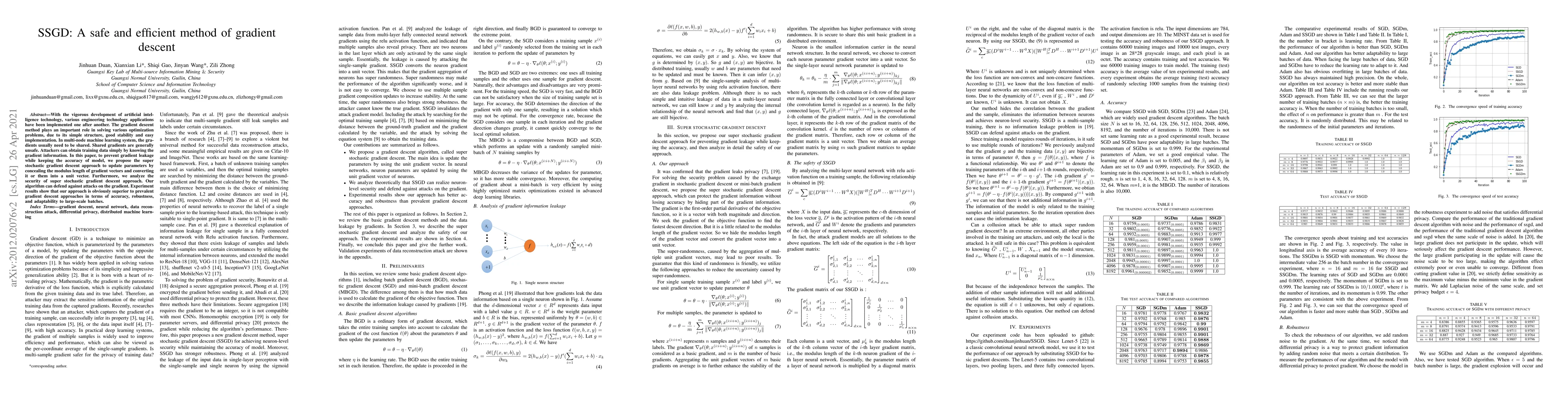 With the vigorous development of artificial intelligence technology, various engineering technology applications have been implemented one after another. The gradient descent method plays an important role in solving various optimization problems, due to its simple structure, good stability and easy implementation. In multi-node machine learning system, the gradients usually need to be shared. Shared gradients are generally unsafe. Attackers can obtain training data simply by knowing the gradient information. In this paper, to prevent gradient leakage while keeping the accuracy of model, we propose the super stochastic gradient descent approach to update parameters by concealing the modulus length of gradient vectors and converting it or them into a unit vector. Furthermore, we analyze the security of super stochastic gradient descent approach. Our algorithm can defend against attacks on the gradient. Experiment results show that our approach is obviously superior to prevalent gradient descent approaches in terms of accuracy, robustness, and adaptability to large-scale batches.