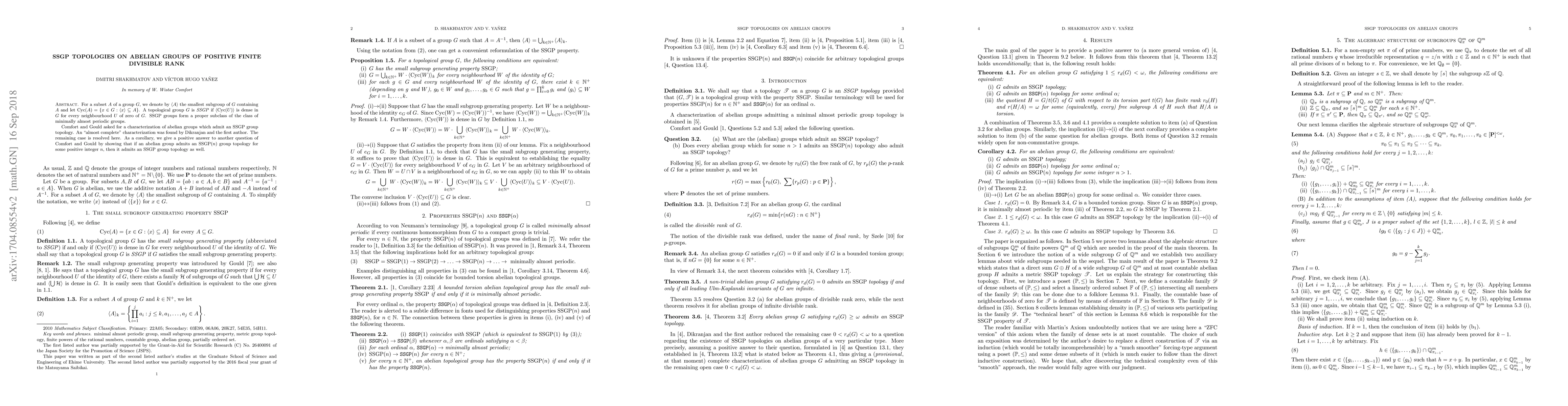 Let G be an abelian group. For a subset A of G, Cyc(A) denotes the set of all elements x of G such that the cyclic subgroup generated by x is contained in A, and G is said to have the small subgroup generating property (abbreviated to SSGP) if the smallest subgroup of G generated by Cyc(U) is dense in G for every neighbourhood U of zero of G. SSGP groups form a proper subclass of the class of minimally almost periodic groups. Comfort and Gould asked for a characterization of abelian groups G which admit an SSGP group topology, and they solved this problem for bounded torsion groups (which have divisible rank zero). Dikranjan and the first author proved that an abelian group of infinite divisible rank admits an SSGP group topology. In the remaining case of positive finite divisible rank, the same authors found a necessary condition on G in order to admit an SSGP group topology and asked if this condition is also sufficient. We answer this question positively, thereby completing the characterization of abelian groups which admit an SSGP group topology.