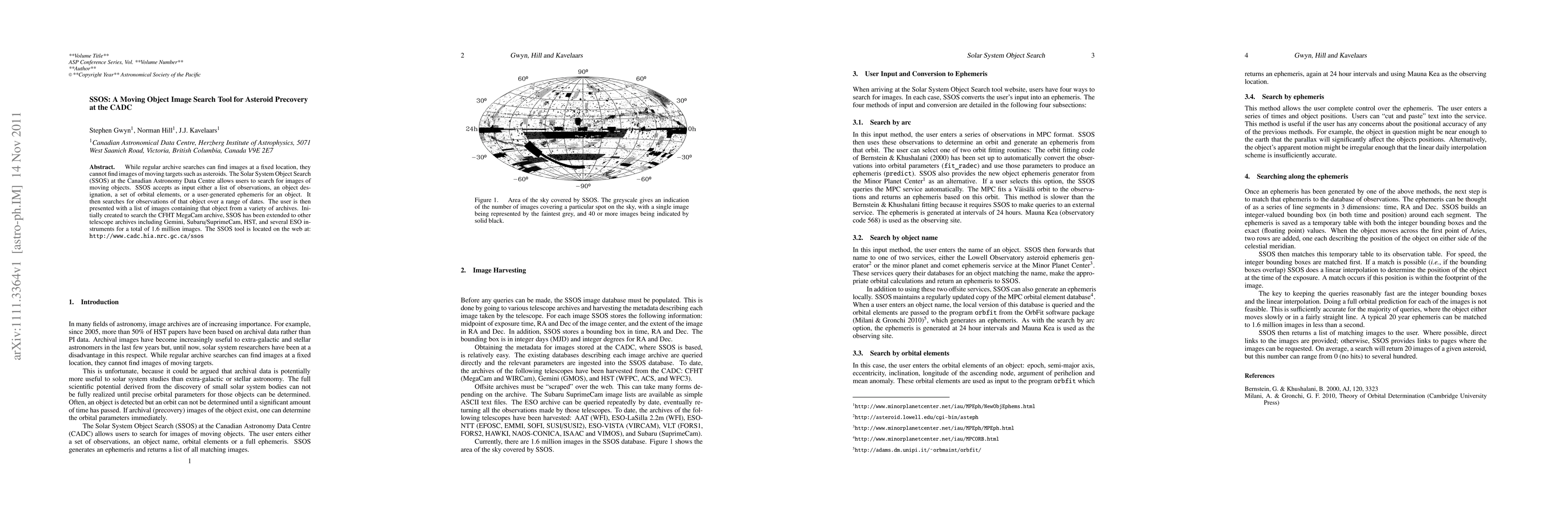 While regular archive searches can find images at a fixed location, they cannot find images of moving targets such as asteroids. The Solar System Object Search (SSOS) at the Canadian Astronomy Data Centre allows users to search for images of moving objects. SSOS accepts as input either a list of observations, an object designation, a set of orbital elements, or a user-generated ephemeris for an object. It then searches for observations of that object over a range of dates. The user is then presented with a list of images containing that object from a variety of archives. Initially created to search the CFHT MegaCam archive, SSOS has been extended to other telescope archives including Gemini, Subaru/SuprimeCam, HST, and several ESO instruments for a total of 1.6 million images. The SSOS tool is located on the web at: http://www.cadc.hia.nrc.gc.ca/ssos