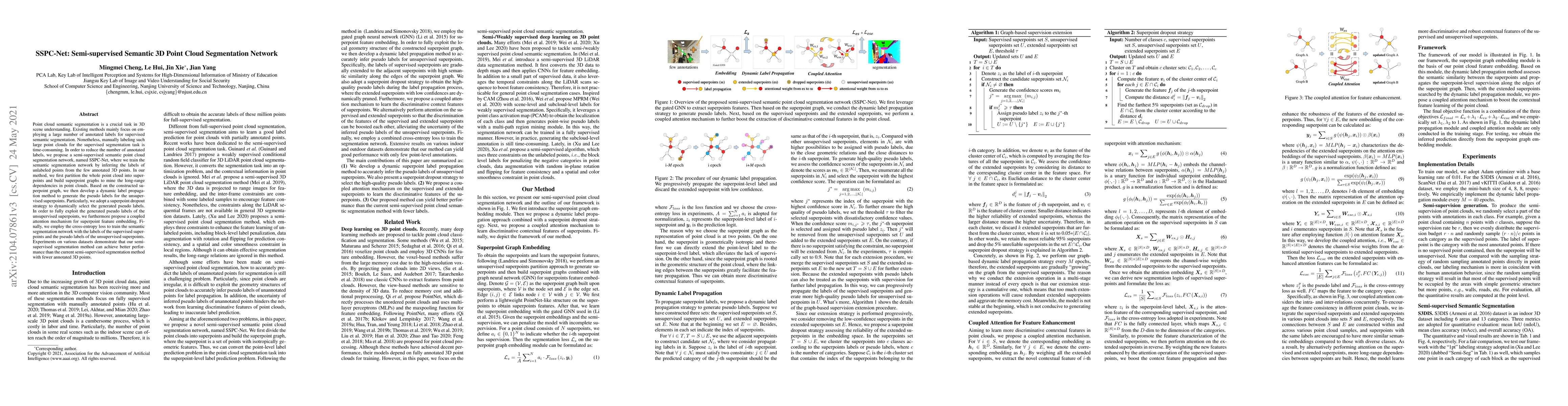 SSPC-Net proposes a semi-supervised semantic segmentation network for 3D point clouds, leveraging a few annotated points to infer labels for unlabeled points through superpoint graph construction and dynamic label propagation. The method achieves superior performance with fewer labeled data compared to existing semi-supervised methods.