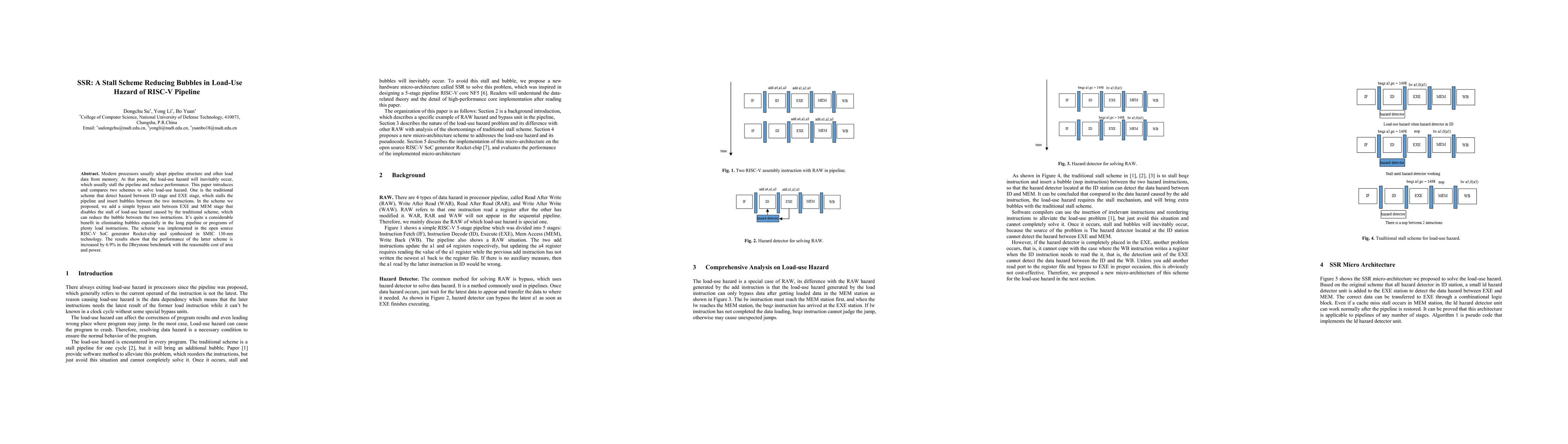 Modern processors usually adopt pipeline structure and often load data from memory. At that point, the load-use hazard will inevitably occur, which usually stall the pipeline and reduce performance. This paper introduces and compares two schemes to solve load-use hazard. One is the traditional scheme that detect hazard between ID stage and EXE stage, which stalls the pipeline and insert bubbles between the two instructions. In the scheme we proposed, we add a simple bypass unit between EXE and MEM stage that disables the stall of load-use hazard caused by the traditional scheme, which can reduce the bubble between the two instructions. It's quite a considerable benefit in eliminating bubbles especially in the long pipeline or programs of plenty load instructions. The scheme was implemented in the open source RISC-V SoC generator Rocket-chip and synthesized in SMIC 130-nm technology. The results show that the performance of the latter scheme is increased by 6.9% in the Dhrystone benchmark with the reasonable cost of area and power.