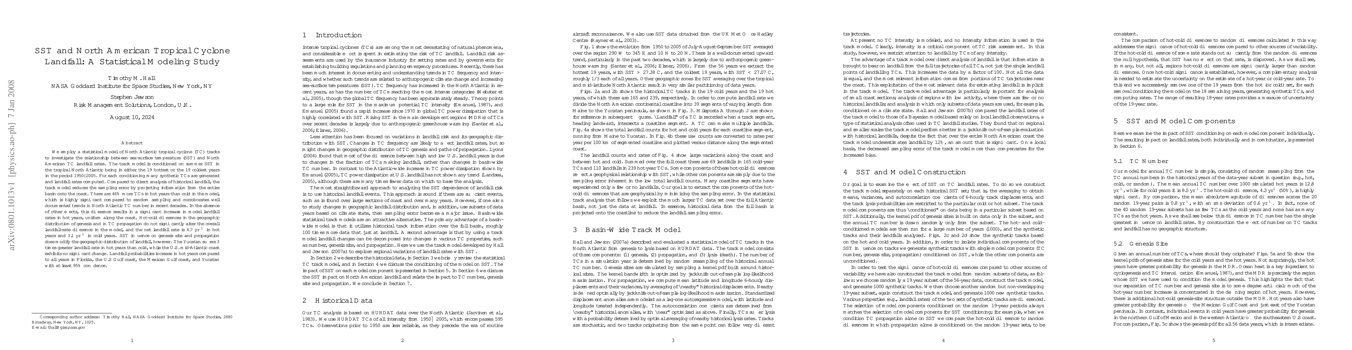 This study uses a statistical model to explore the relationship between sea-surface temperature (SST) and North American tropical cyclone (TC) landfall rates, finding a significant increase in landfall rates in years with warmer SSTs. The model projects a 46% higher TC landfall rate in the 19 hottest years compared to the 19 coldest years, with notable regional variations.