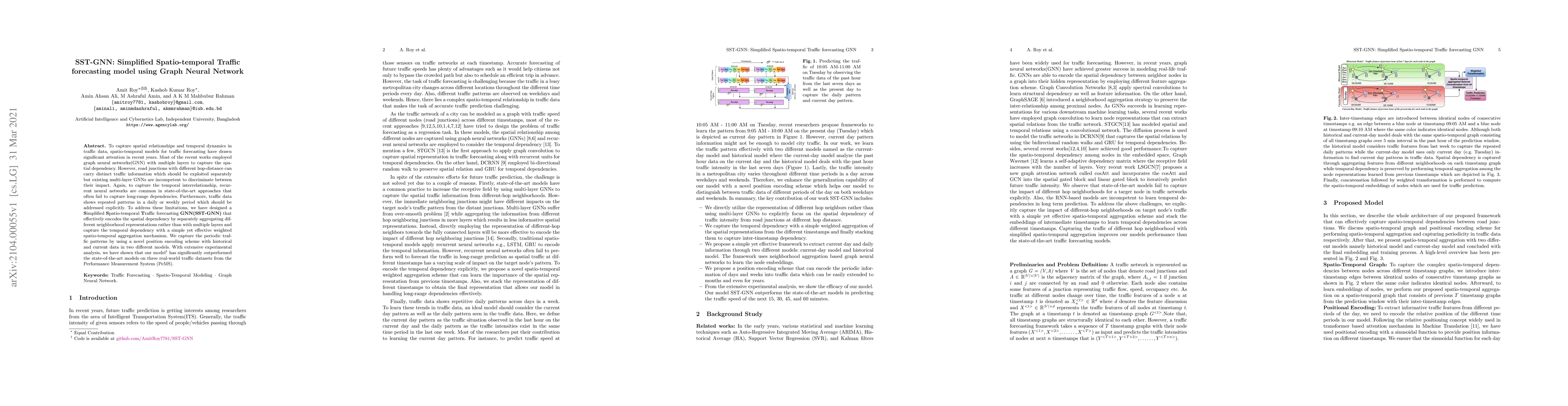 SST-GNN simplifies traffic forecasting by using a GNN that separately aggregates distinct neighborhood representations for spatial dependency and a weighted spatio-temporal mechanism for temporal dynamics. It also incorporates a position encoding scheme to capture periodic patterns, outperforming state-of-the-art models on real-world traffic datasets.