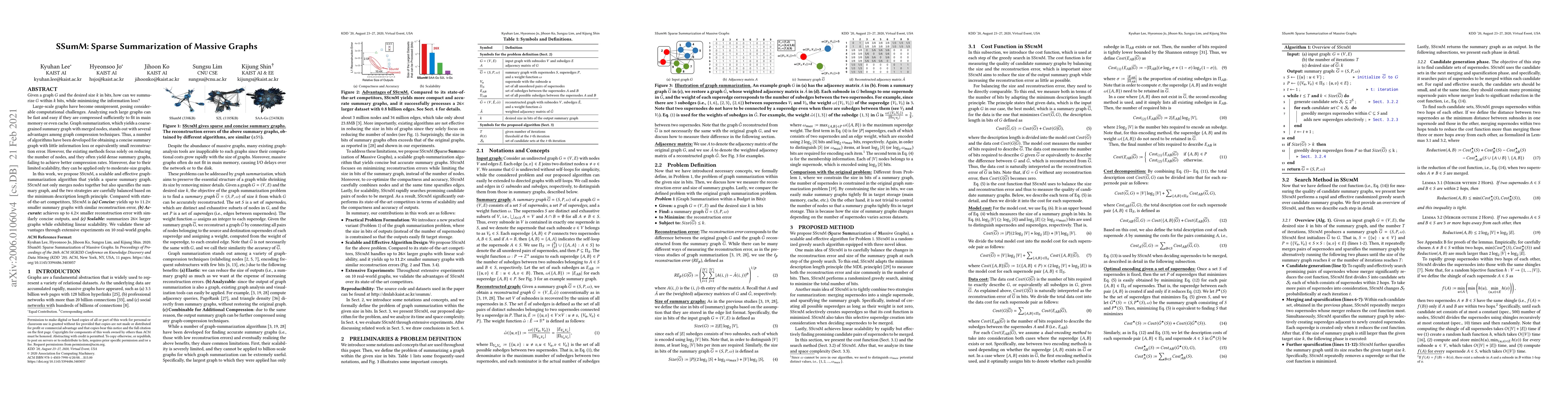 SSumM is a novel scalable graph-summarization algorithm designed to produce sparse summary graphs that minimize information loss while fitting within a given bit size. It achieves significant improvements in conciseness, accuracy, and scalability compared to existing methods, validated through extensive experiments on real-world large-scale graphs.