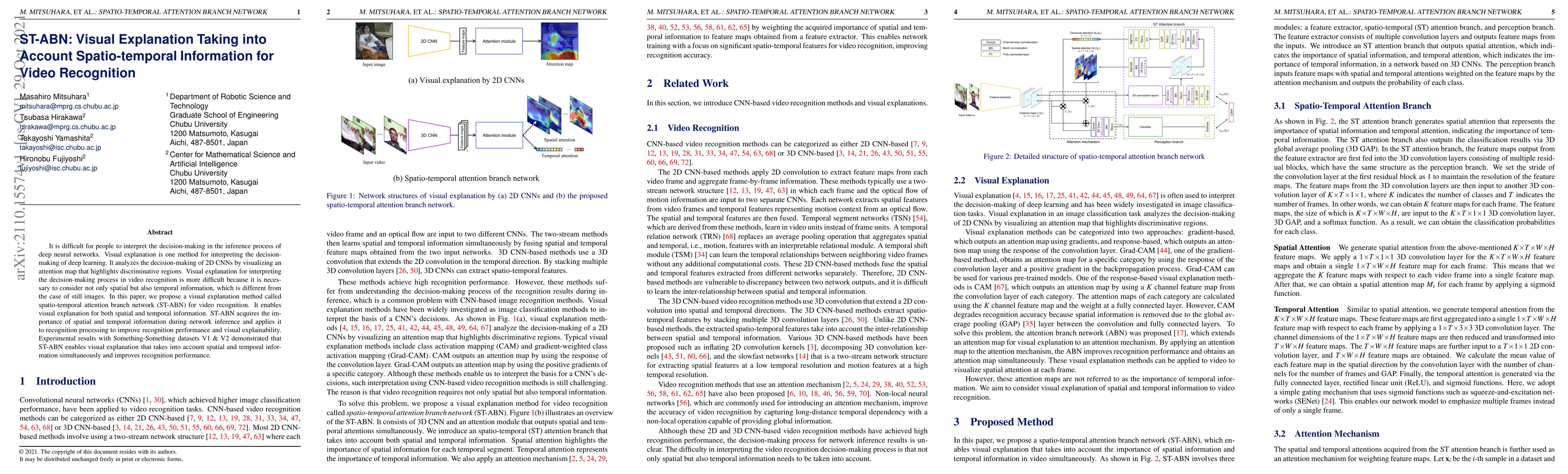 This paper proposes the ST-ABN method for visual explanation in video recognition, integrating both spatial and temporal information to enhance interpretability and recognition performance. Experimental results show that ST-ABN effectively highlights discriminative regions in videos, improving both explainability and accuracy.