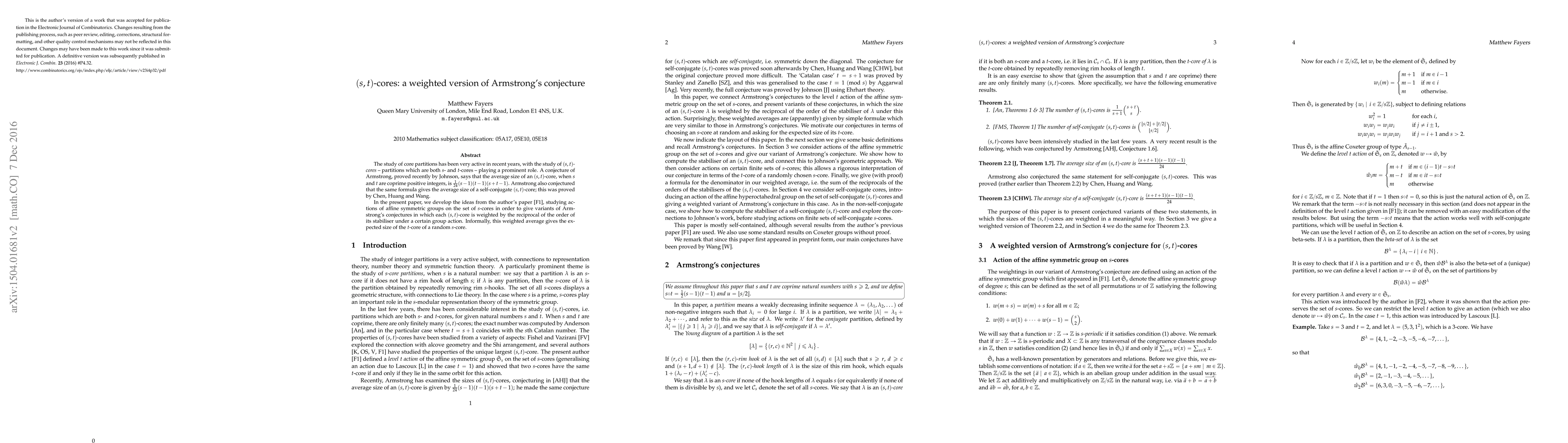 The study of core partitions has been very active in recent years, with the study of $(s,t)$-cores - partitions which are both $s$- and $t$-cores - playing a prominent role. A conjecture of Armstrong, proved recently by Johnson, says that the average size of an $(s,t)$-core, when $s$ and $t$ are coprime positive integers, is $\frac1{24}(s-1)(t-1)(s+t-1)$. Armstrong also conjectured that the same formula gives the average size of a self-conjugate $(s,t)$-core; this was proved by Chen, Huang and Wang. In the present paper, we develop the ideas from the author's paper [J. Combin. Theory Ser. A 118 (2011) 1525-1539] studying actions of affine symmetric groups on the set of $s$-cores in order to give variants of Armstrong's conjectures in which each $(s,t)$-core is weighted by the reciprocal of the order of its stabiliser under a certain group action. Informally, this weighted average gives the expected size of the $t$-core of a random $s$-core.