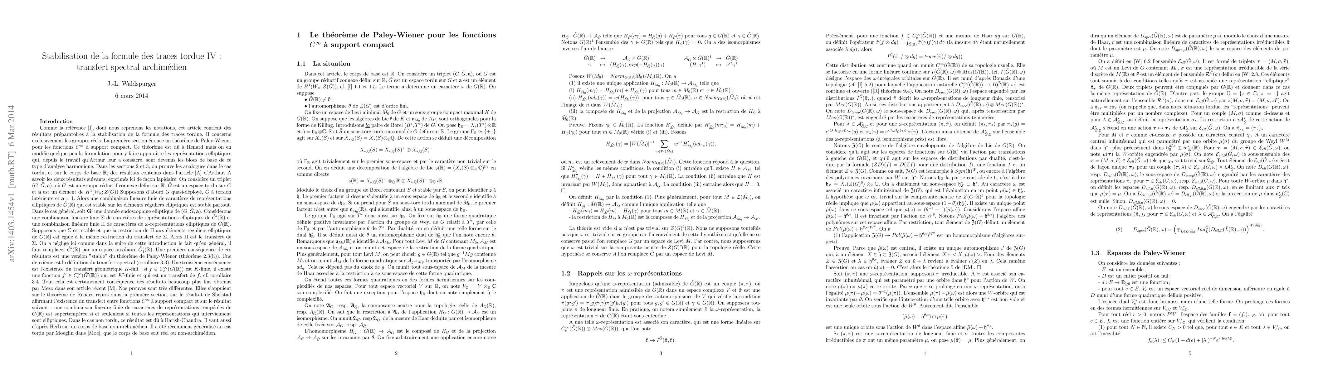 It is one of a series of papers whose goal is to stabilize the twisted trace formula. We consider here a "twisted space" over the real field. We prove in this twisted situation the results obtained by Arthur in his Selecta's paper. That is the existence of transfer of tempered representations. We use the Paley-Wiener's theorems of Renard and Delorme-Mezo, the work of Shelstad about transfer of functions and a recent result of Moeglin about super-tempered representations. As corollaries, we obtain a stable version of the Paley-Wiener theorem and the fact that transfer of functions preserves K-finitude.