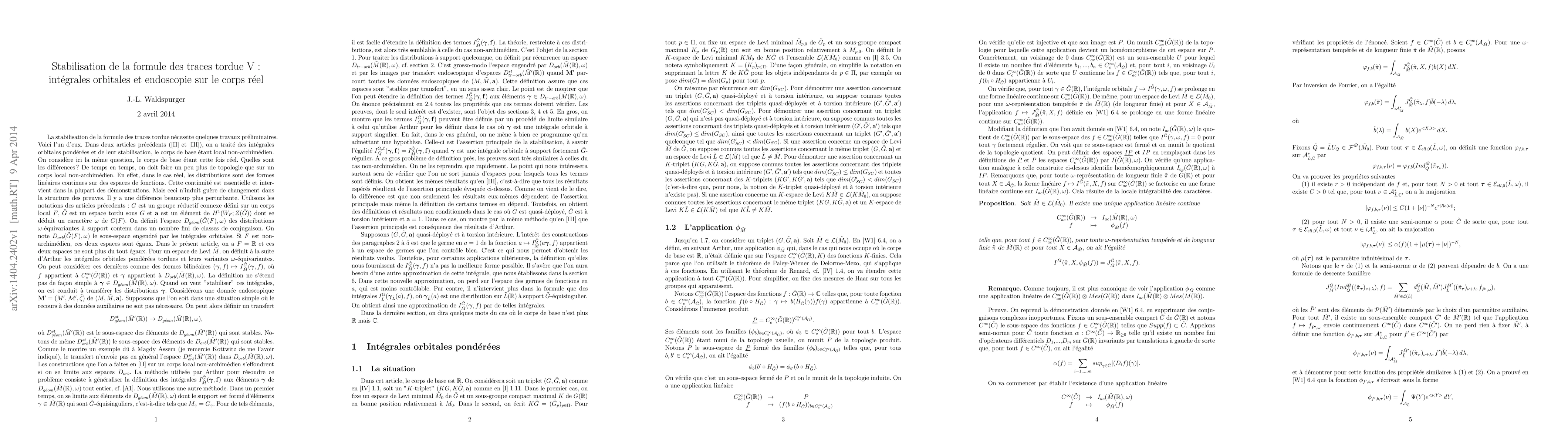 It is one of a series of articles whose goal is to stabilize the twisted trace formula. In two previous papers, we have considered the stabilization of weighted orbital integrals over a non-archimedean local field. Here we consider the similar question over the real field. The principal result is the same: all expected properties are deduced from the stabilization of weighted orbital integrals relative to strongly regular elements.