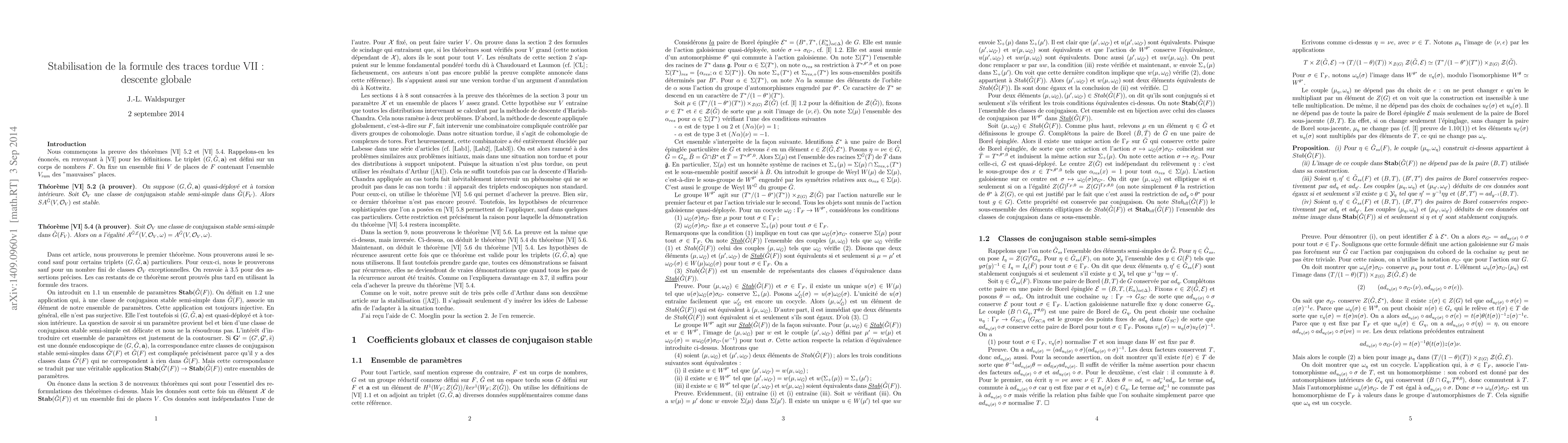 We begin the proof of the stabilization of the twisted trace formula. Here we prove that almost all "coefficients" appearing in this formula are equal to their endoscopic counterpart. It is the generalization to the twisted case of the result proved by Arthur in his second article on the stabilization of the trace formula.
