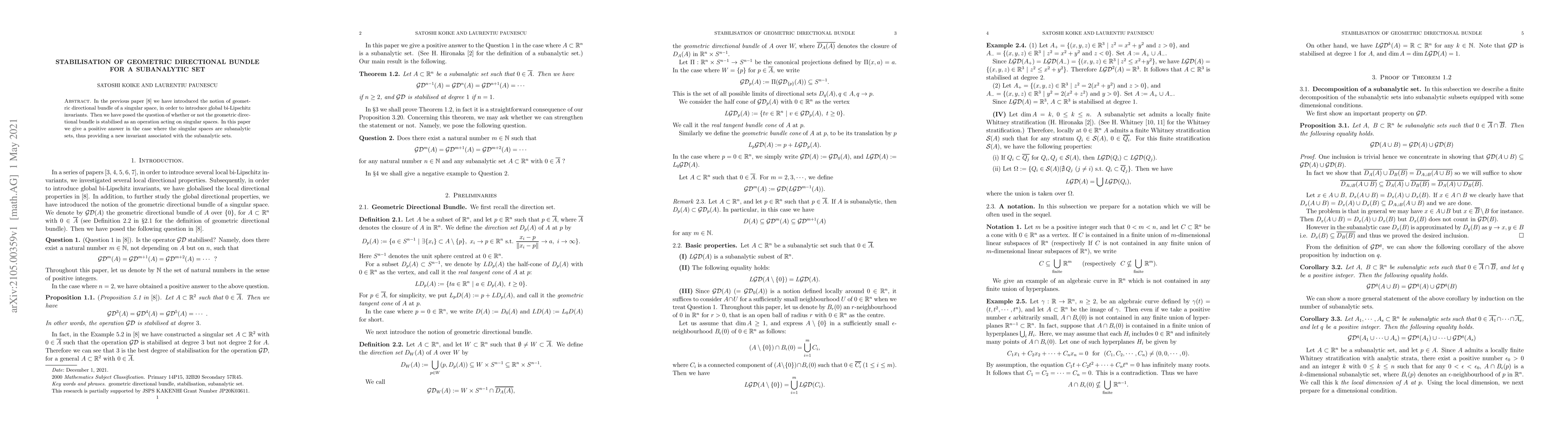 This paper confirms the stabilisation of the geometric directional bundle for subanalytic sets, establishing it as a new invariant for these singular spaces and extending previous work on global bi-Lipschitz invariants.